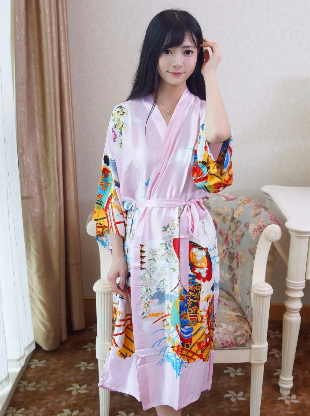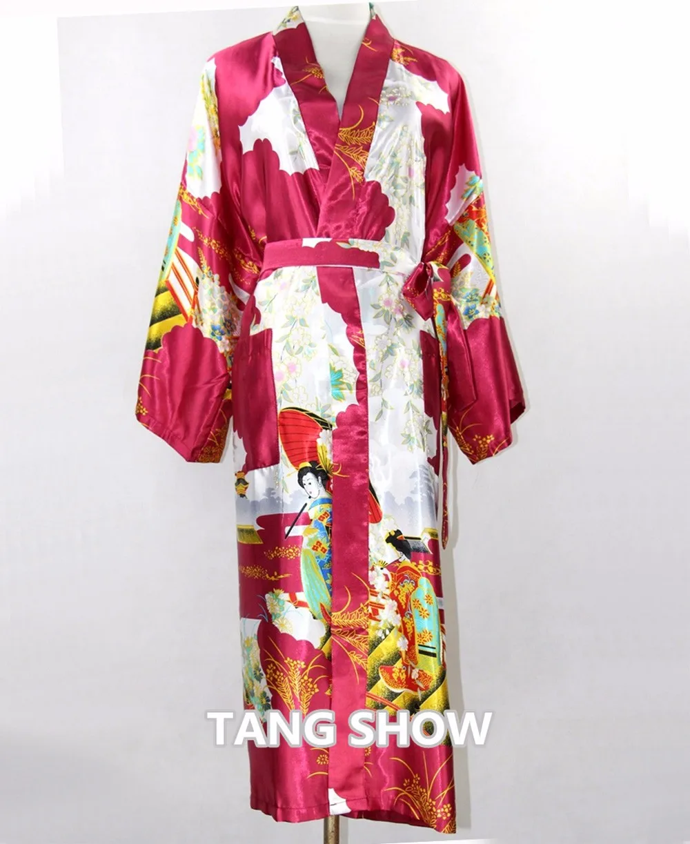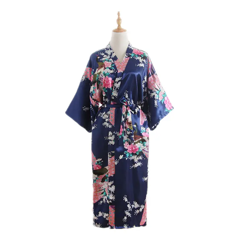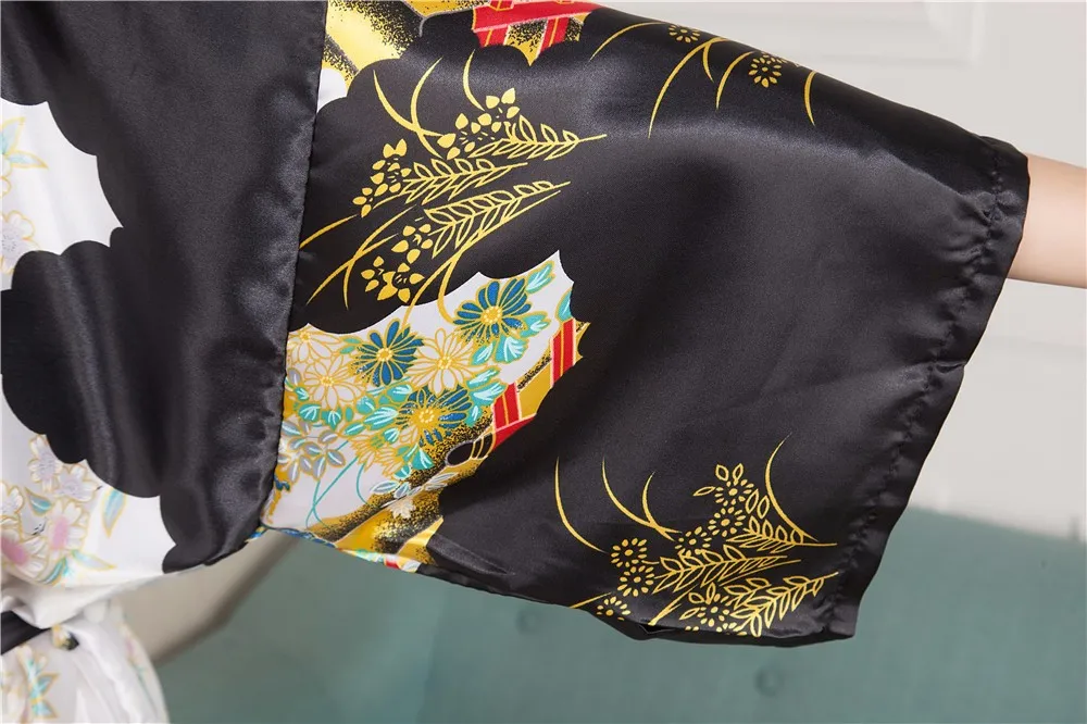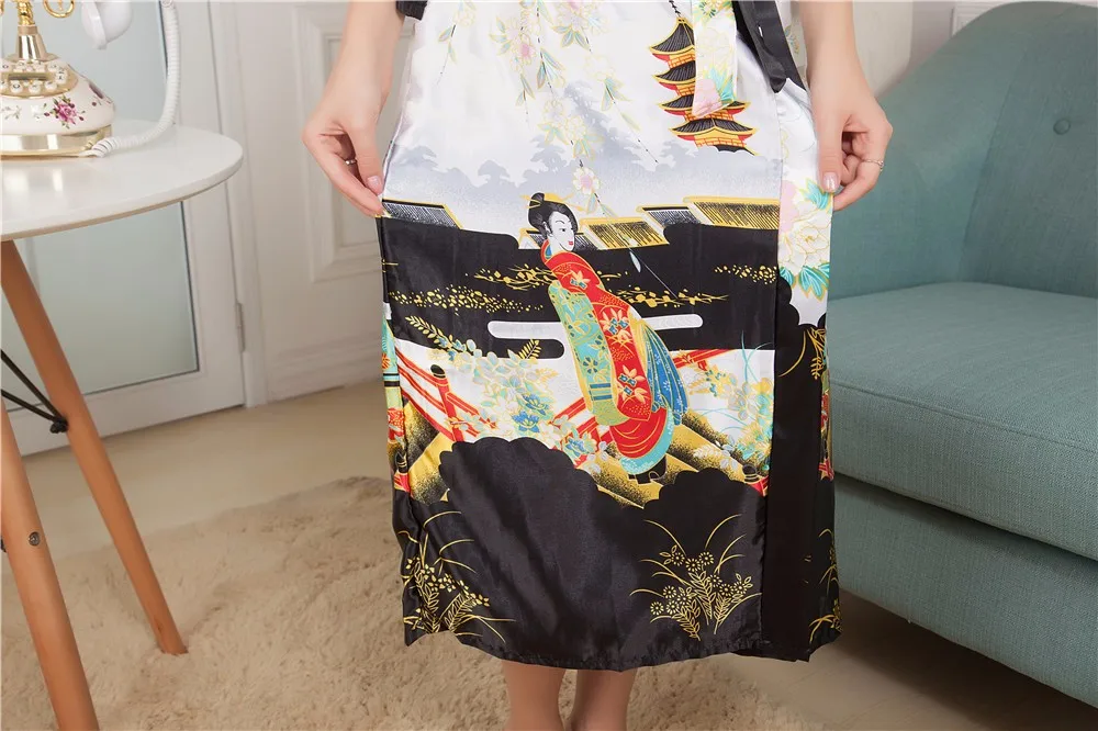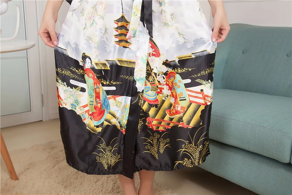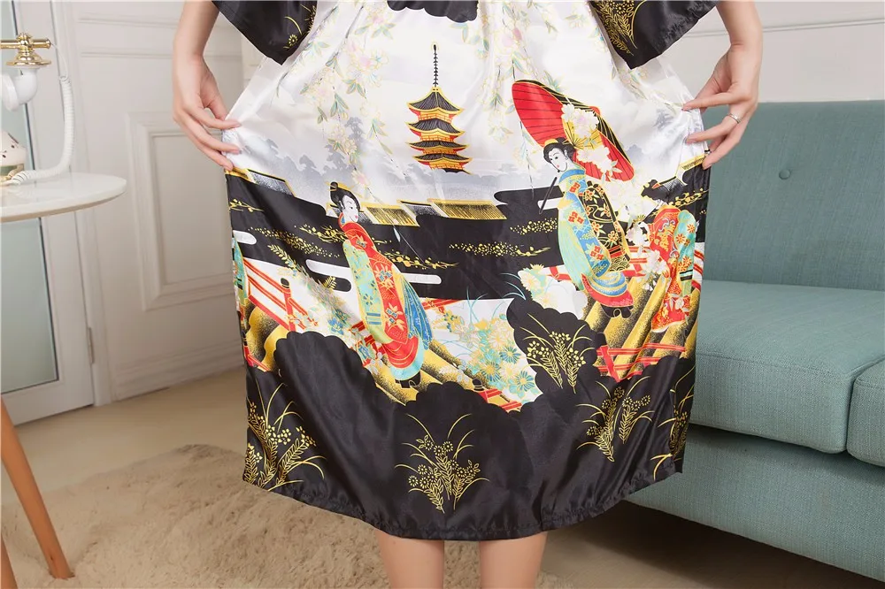 Sexy New Vintage Female Kimono Robe Long Print Nightgown Novelty Print Sleepwear V-Neck Mujer Pajamas Dressing Gown One Size