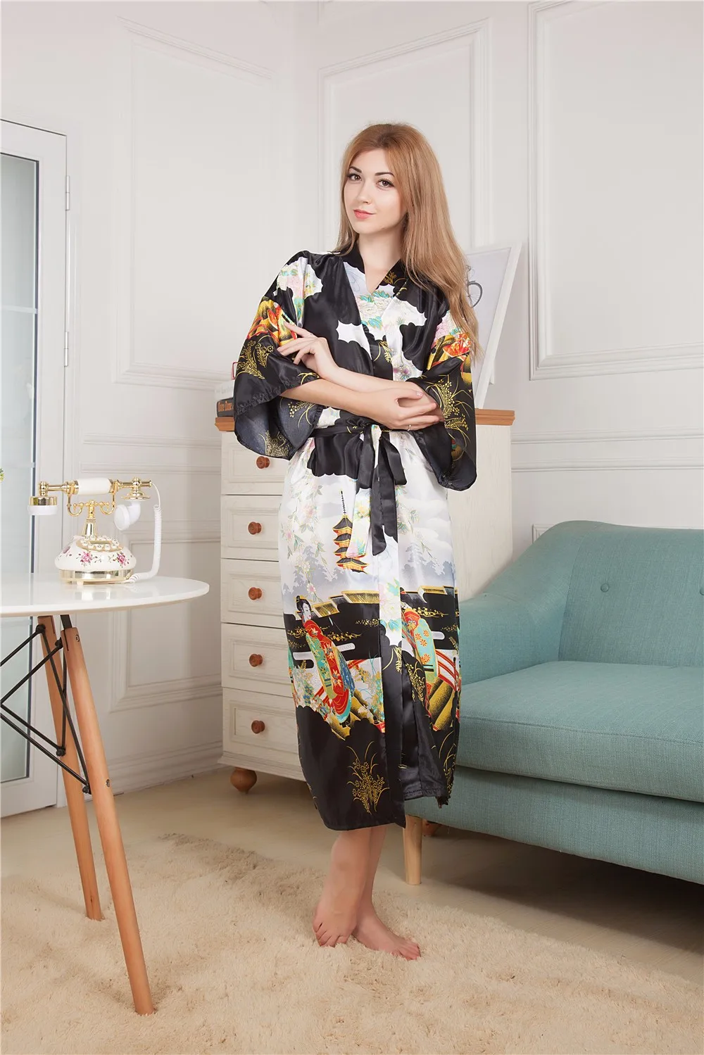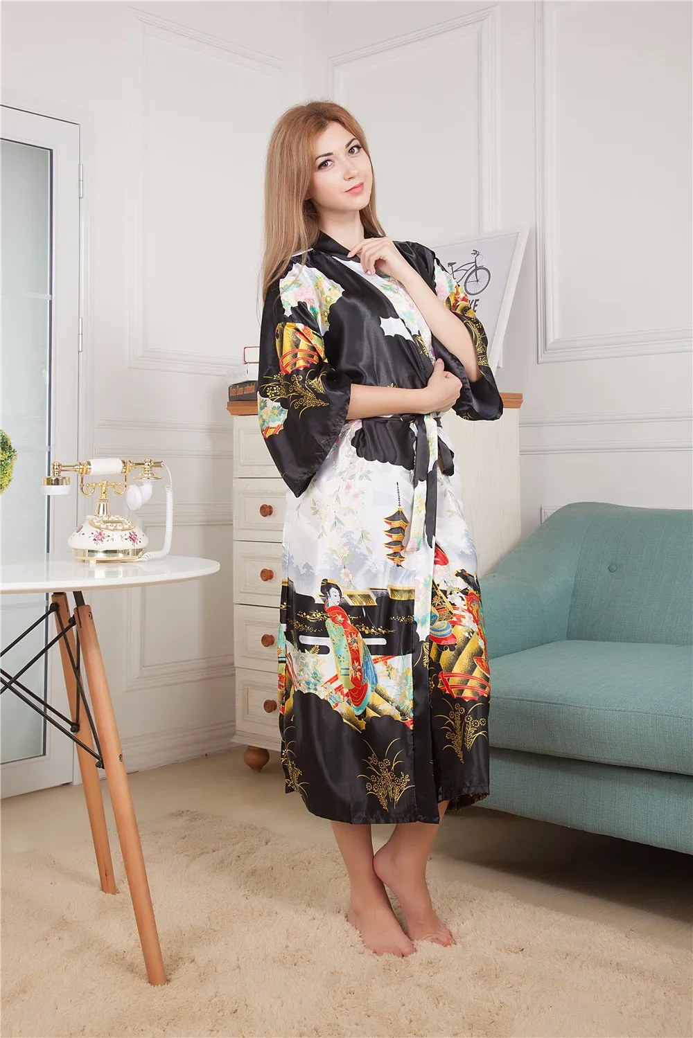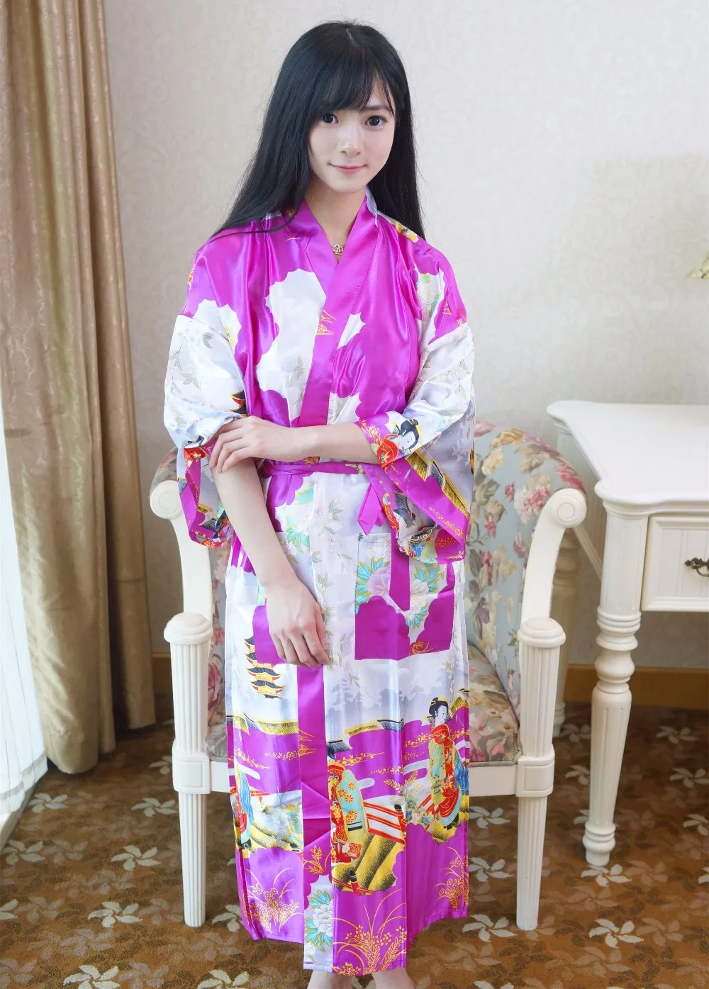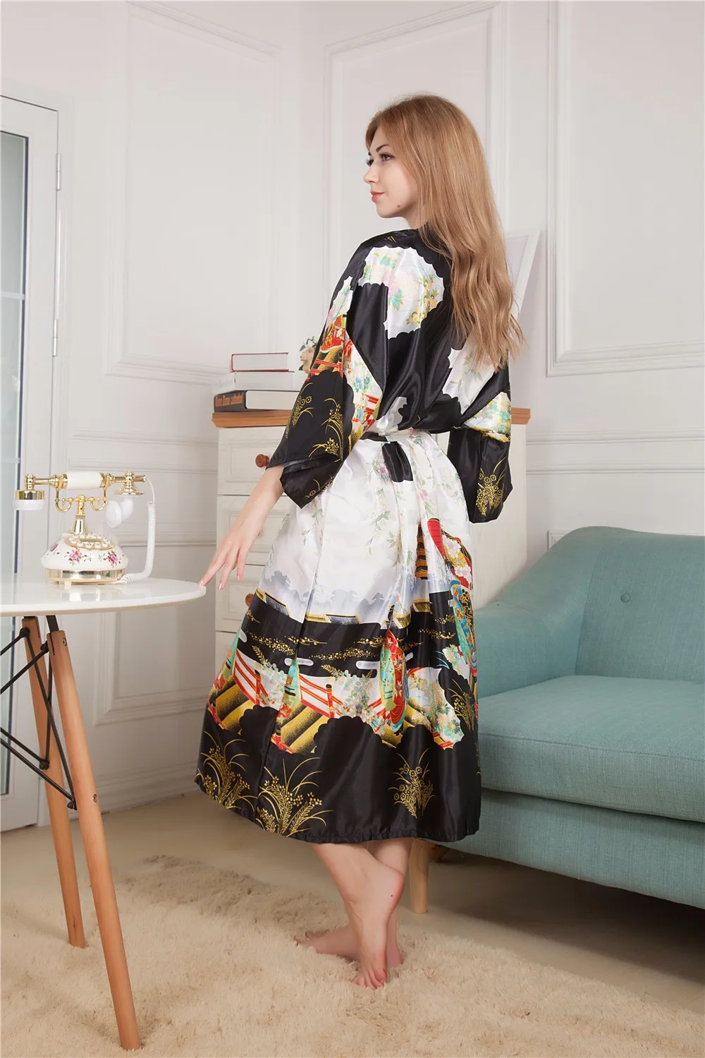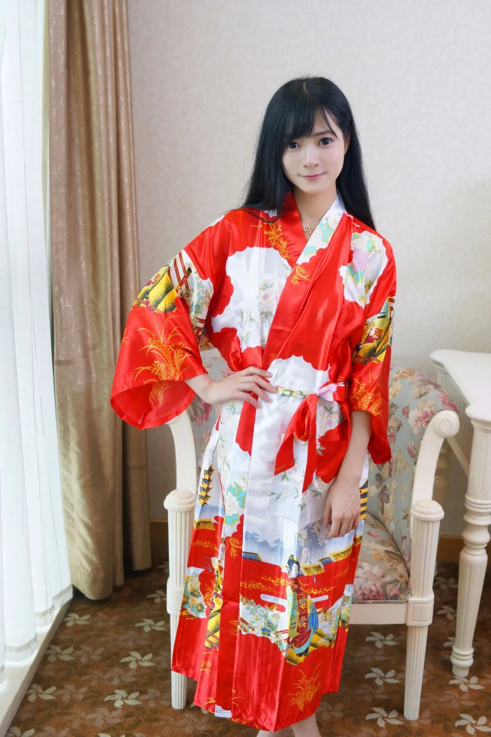 Sexy New Vintage Female Kimono Robe Long Print Nightgown Novelty Print Sleepwear V-Neck Mujer Pajamas Dressing Gown One Size