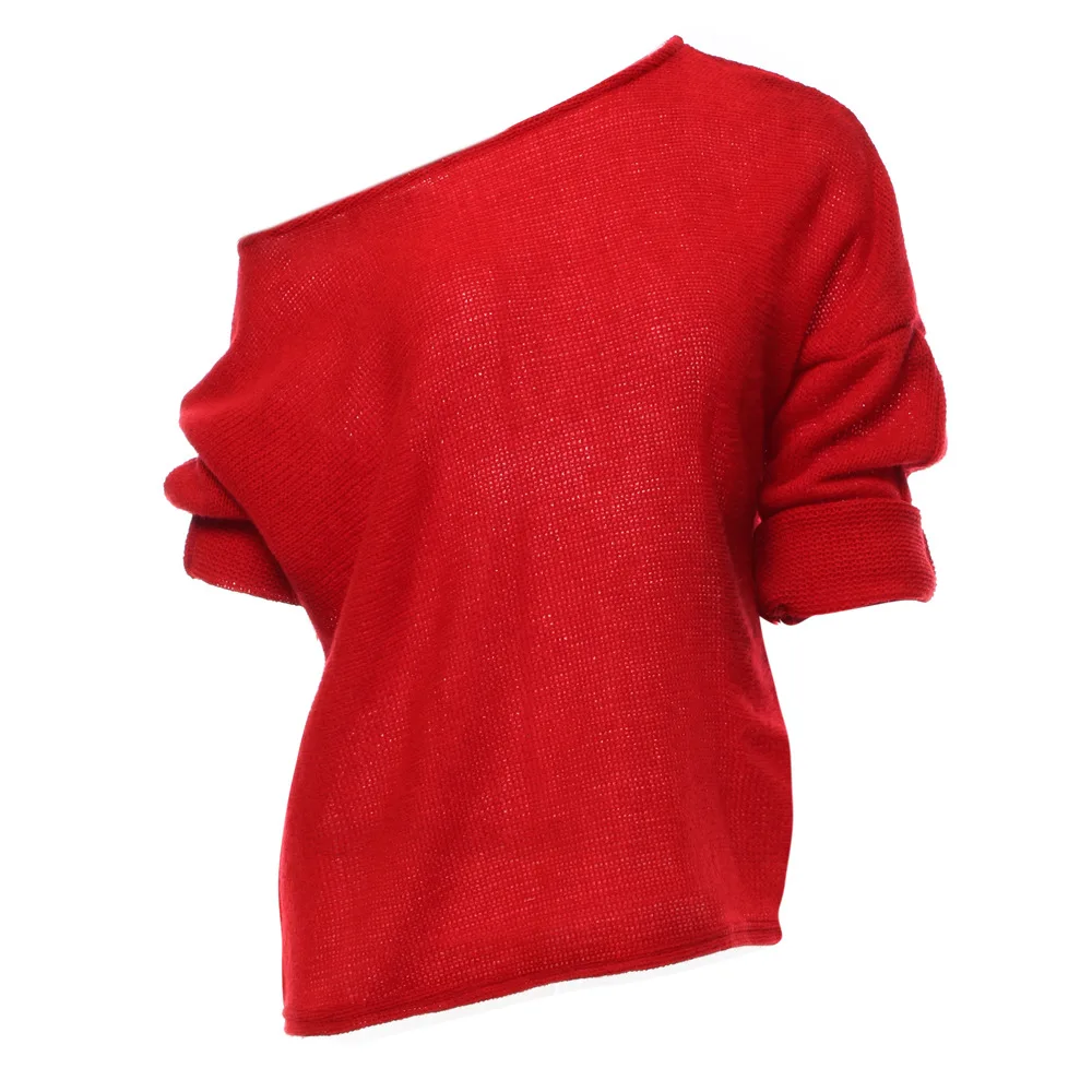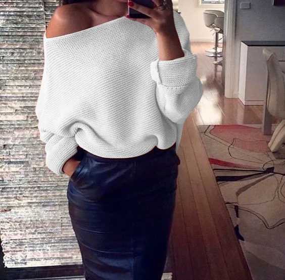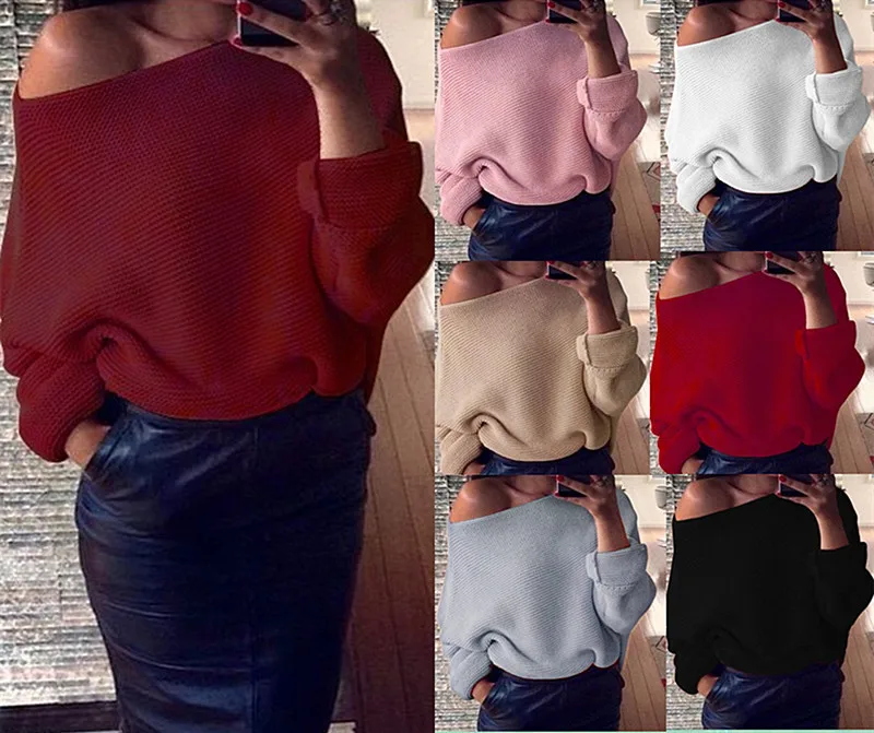 Sexy Off Shoulder Knitted Sweater Women Loose Batwing Sleeve Pullovers Knitwear Autumn Winter 2018 New Jumper Knitwears Femme