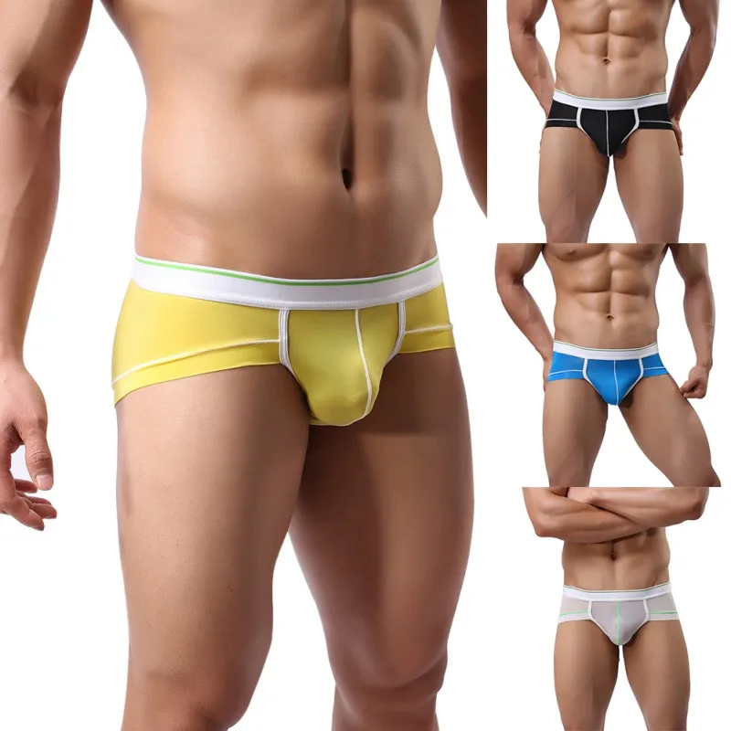 Sexy Penis Pump Translucent Briefs Male Underwear Thin Solid Shorts Soft Breathable U Convex Low Waist Underpants 2018