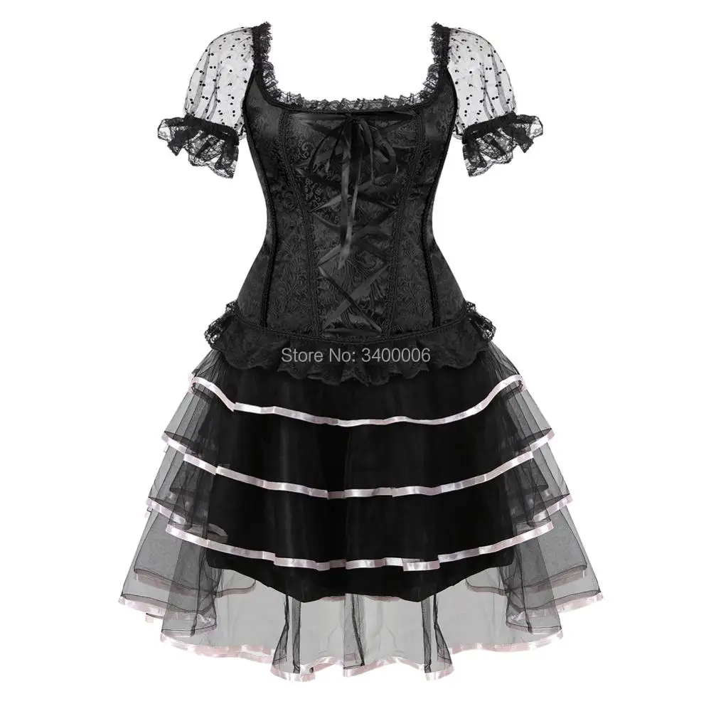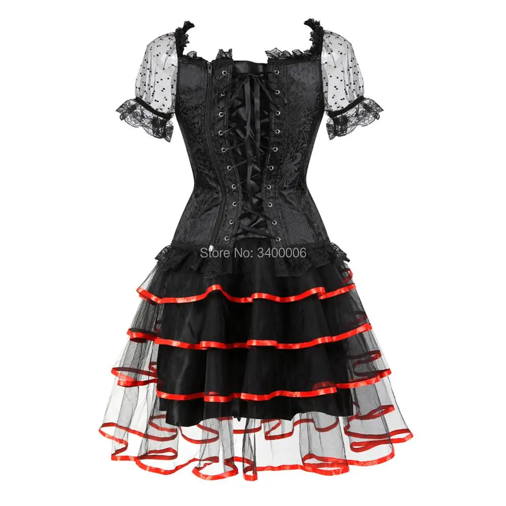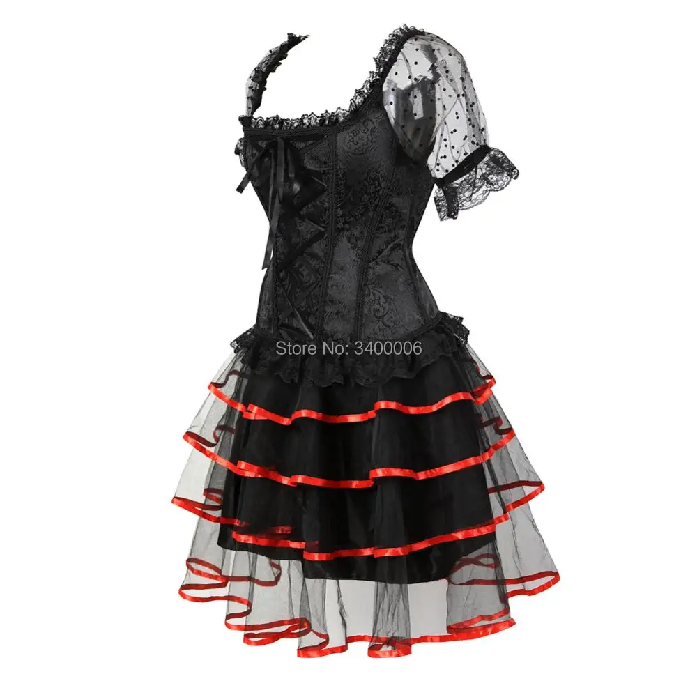Sexy Steampunk Corsets and Bustiers Dess Plus Size Burlesque Gothic Lace up Shoulder Straps Corset Skirts Costume Floral Women