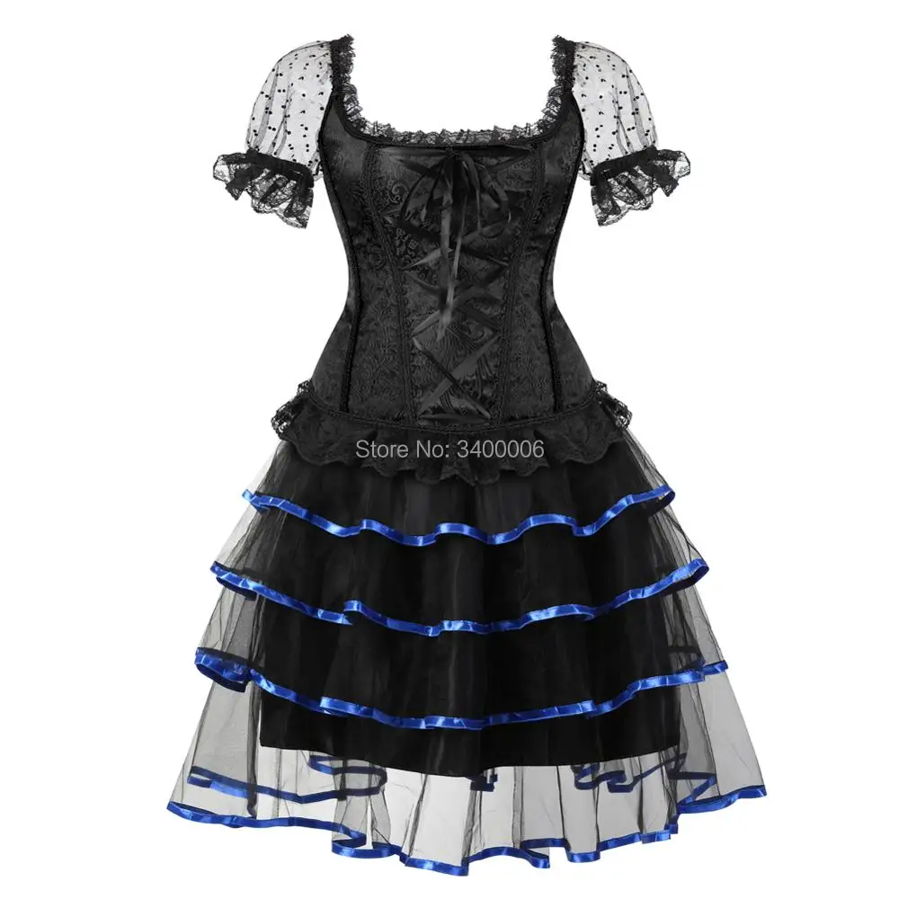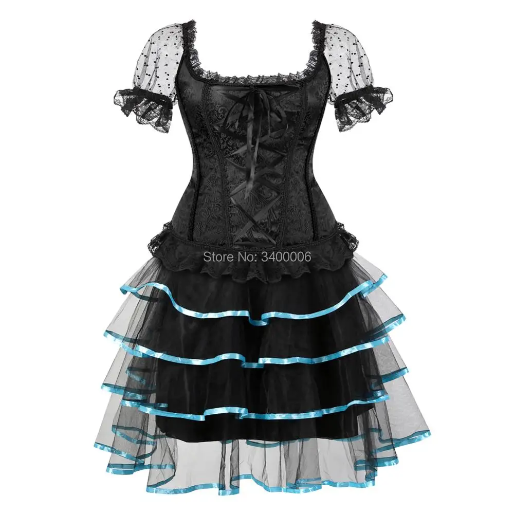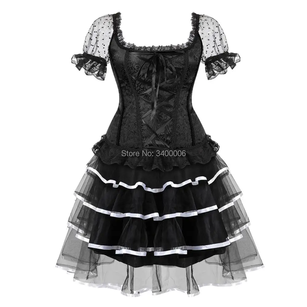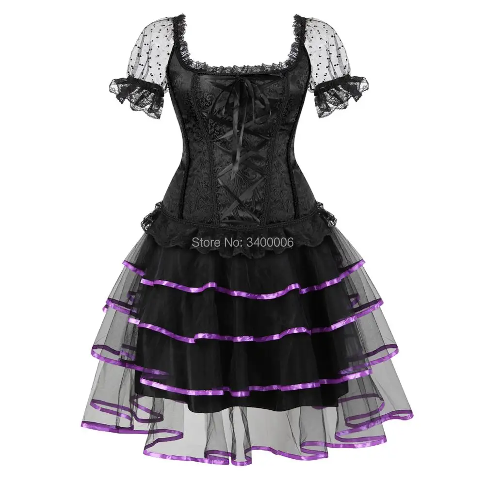 Sexy Steampunk Corsets and Bustiers Dess Plus Size Burlesque Gothic Lace up Shoulder Straps Corset Skirts Costume Floral Women