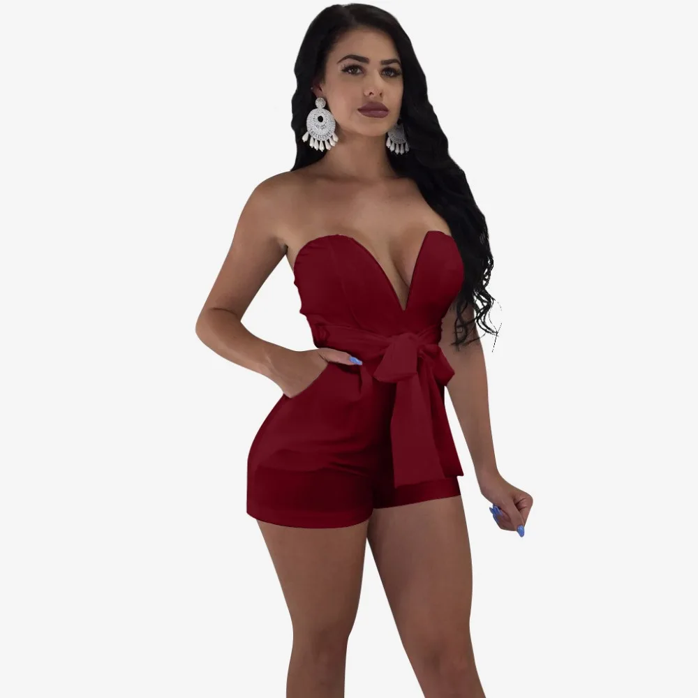 Sexy Strapless Women Summer Playsuits Bodycon Off Shoulder Female Romper Solid Color Lady Summer Jumpsuits
