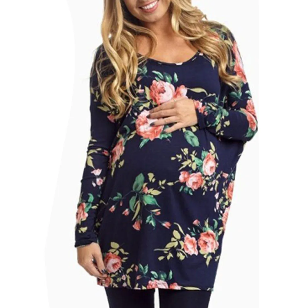 Sexy Sweet Womens Long Sleeve Blouse Flower Print For Maternity T-Shirt Cotton V-Neck Spring Fall Pregnant Maternity Clothing