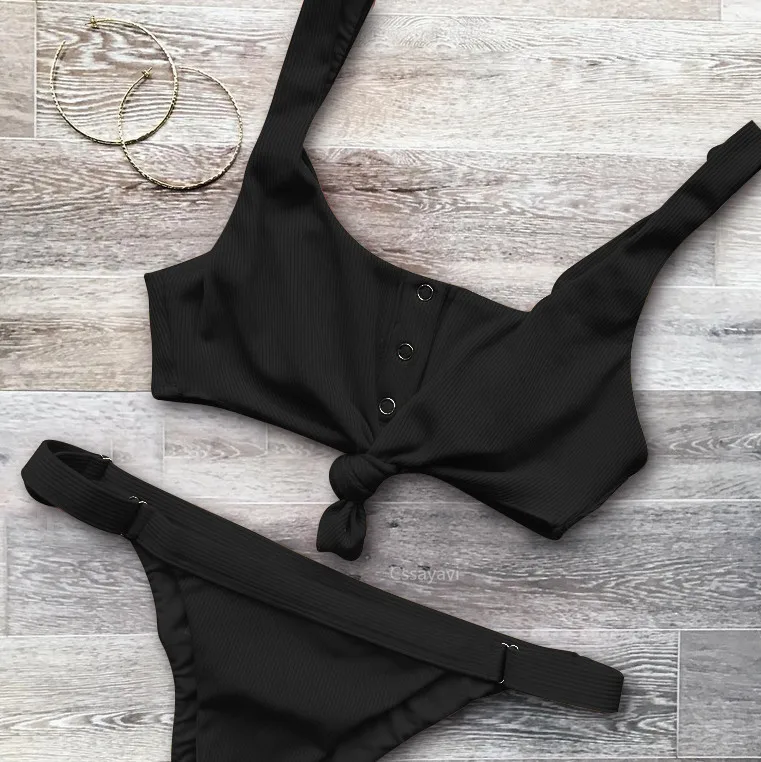 Sexy Swimwear Solid Bikini set Women two-piece Swimsuit V Neck Bikinis Set Pants Adjustable Bathing Suit Sport Style Biquini
