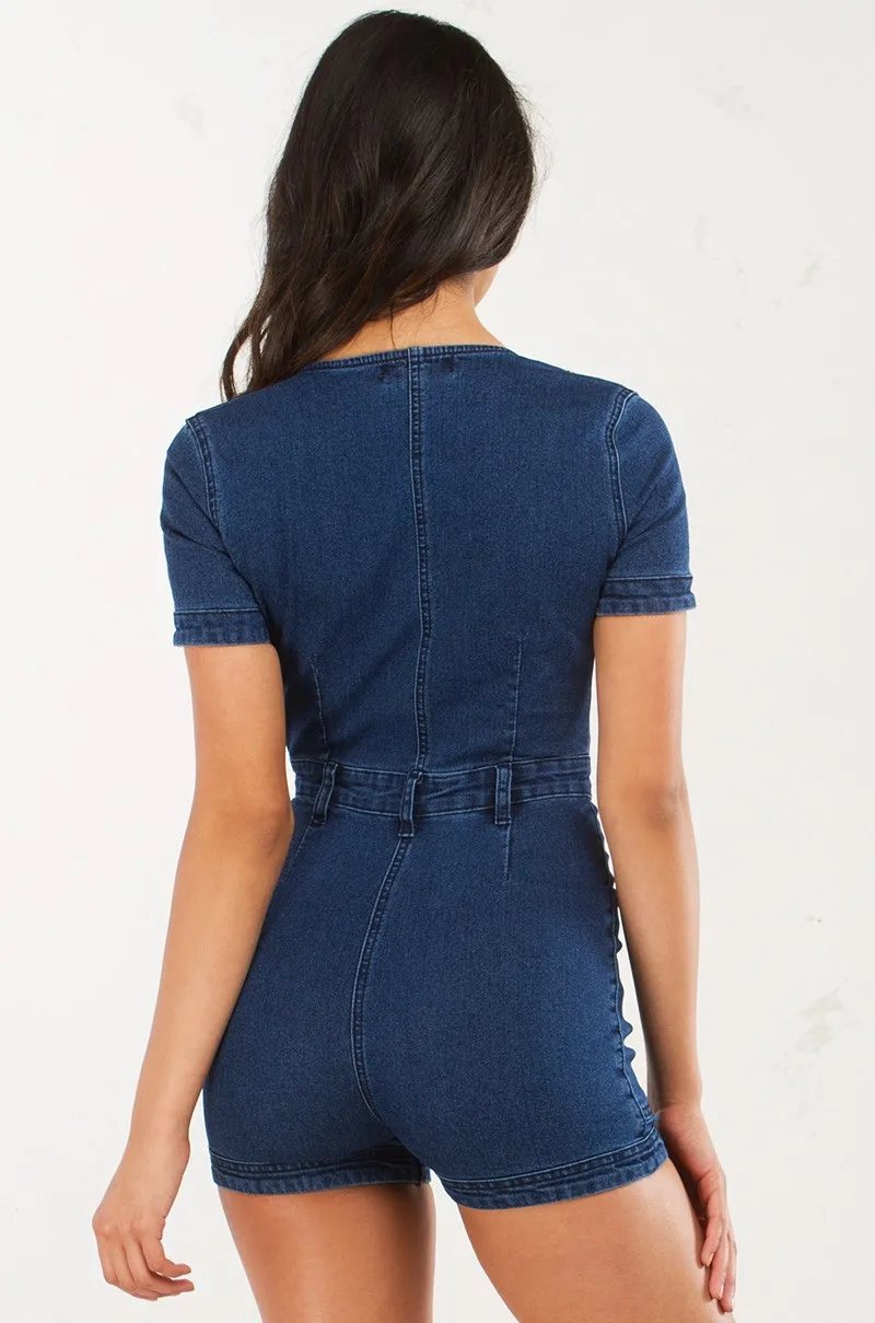 Sexy Women Blue Jeans Bodysuit Short Sleeve One Piece Pants Denim Playsuits Cotton Rompers Women Bandage Short Jumpsuit Overalls