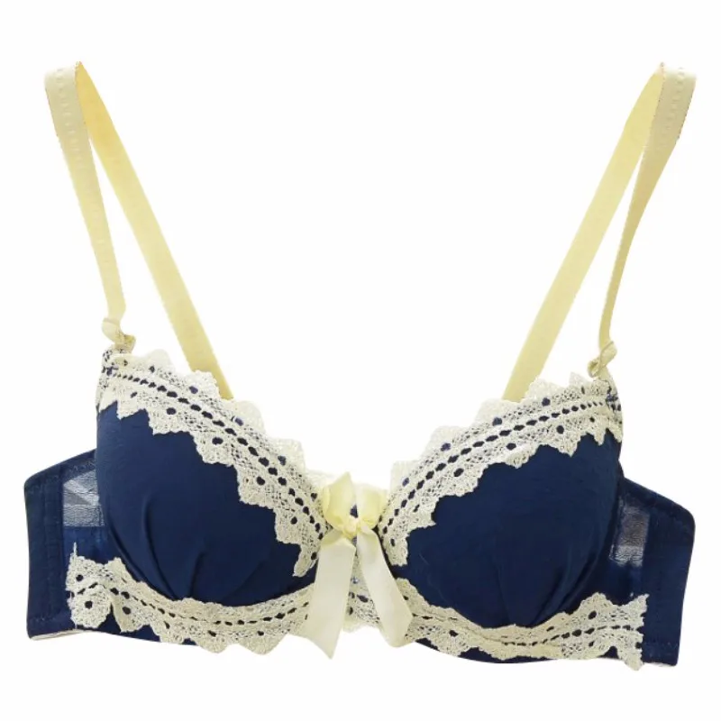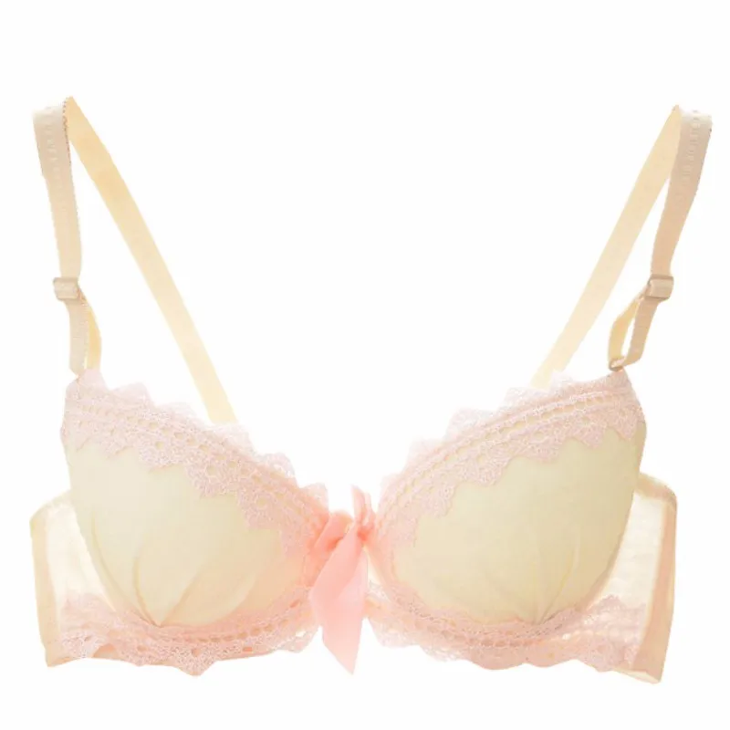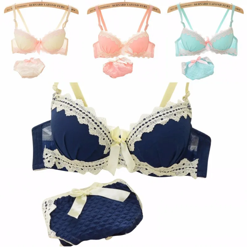 Sexy Women Brassiere Lingerie Bra Underwear Set Padded Small Chest Bra Set Sexy Chiffon Lace Bows Push Up Bra + Panties Set