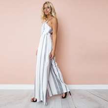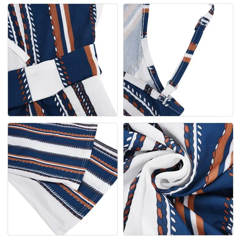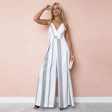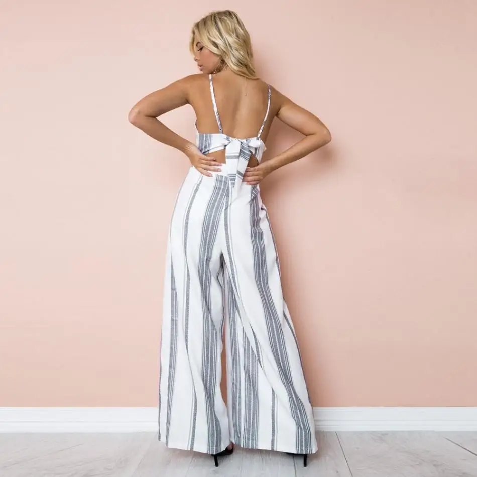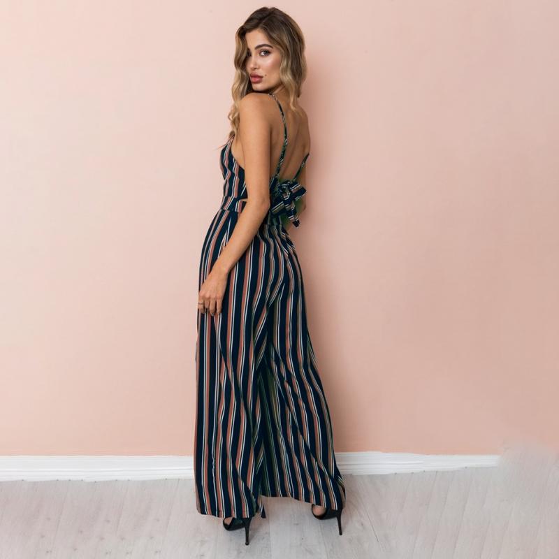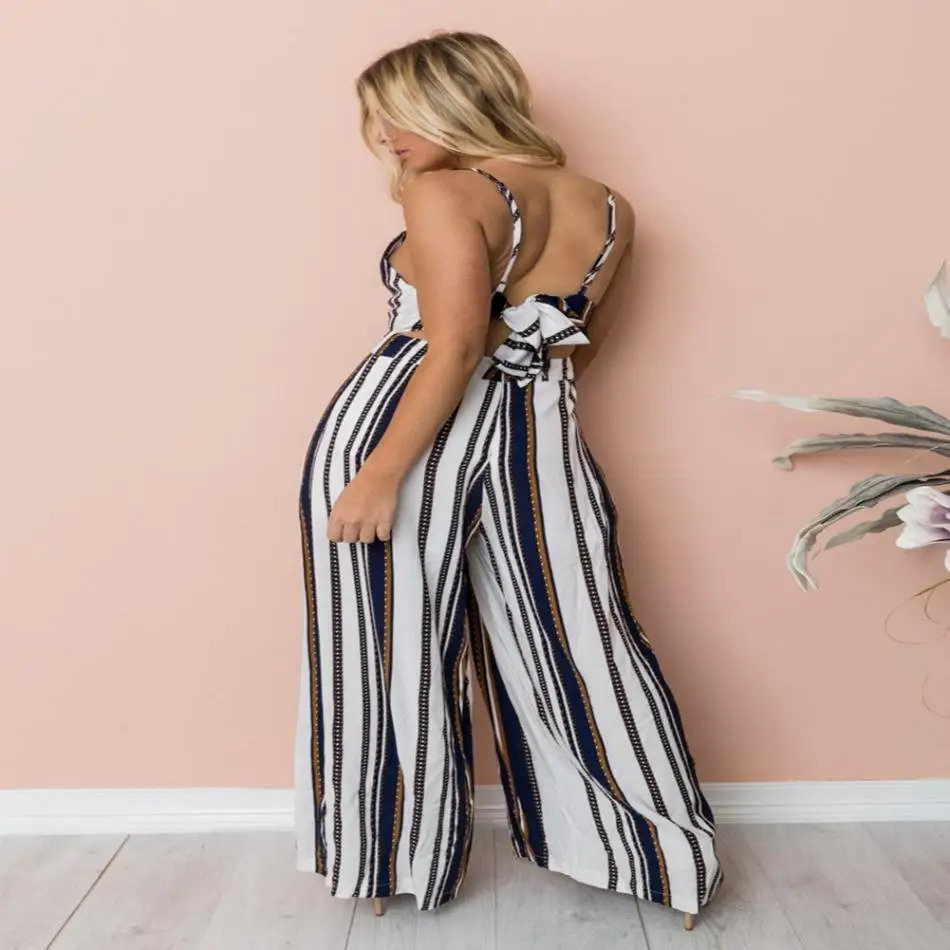 Sexy Women Striped Summer Jumpsuit Sleeveless Strappy High Waist Ladies Clubwear Deep V Neck Playsuit Bodycon Party Jumpsuit