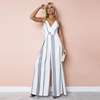 Sexy Women Striped Summer Jumpsuit Sleeveless Strappy High Waist Ladies Clubwear Deep V Neck Playsuit Bodycon Party Jumpsuit