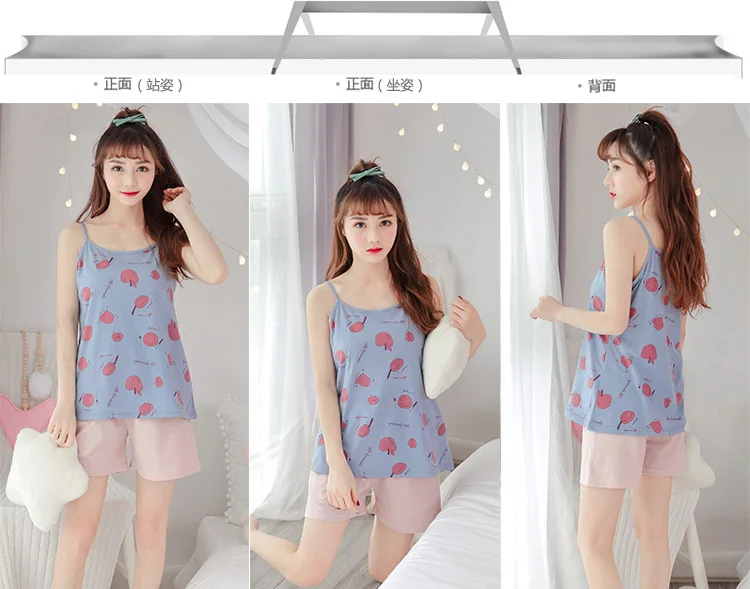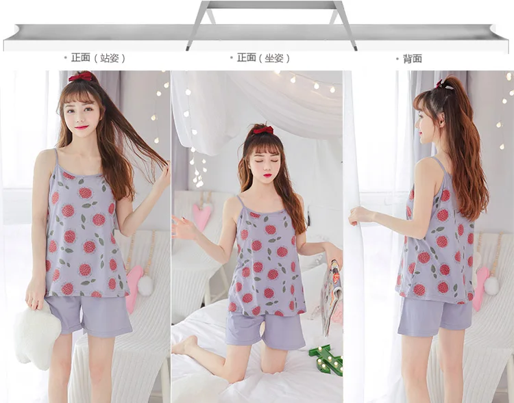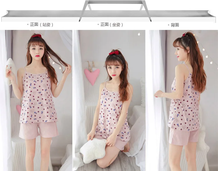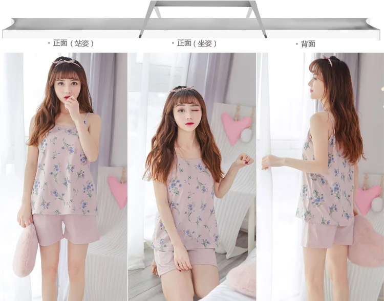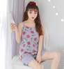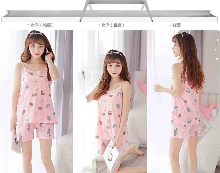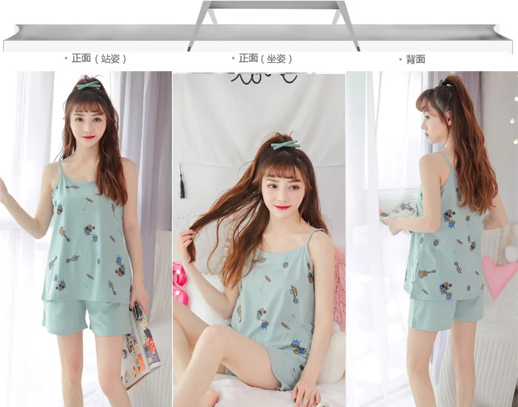 sexy women’s cotton satin pajamas sets new design short pants pyjamas sets o-neck suspenders pijamas sets