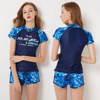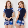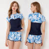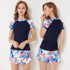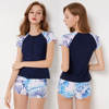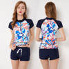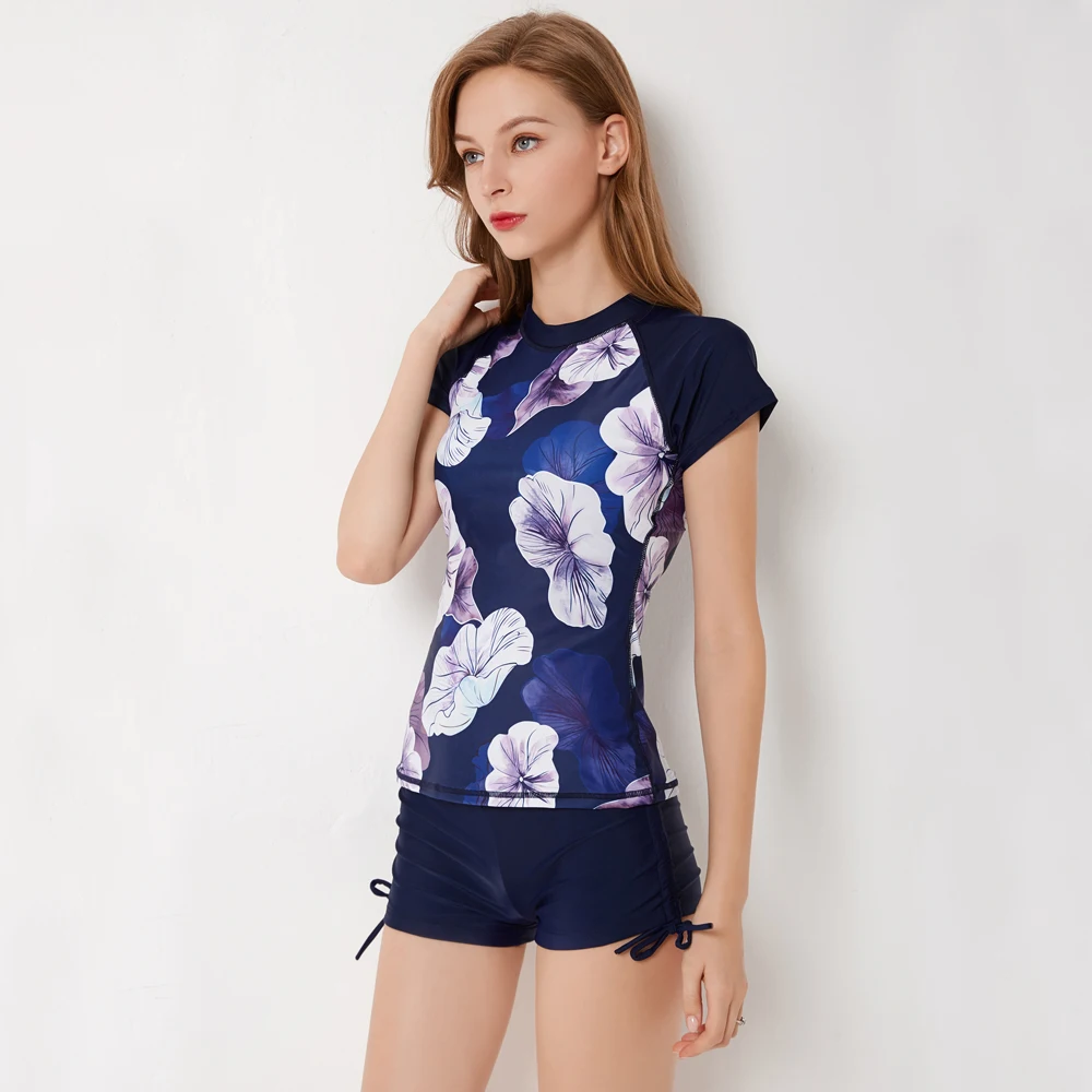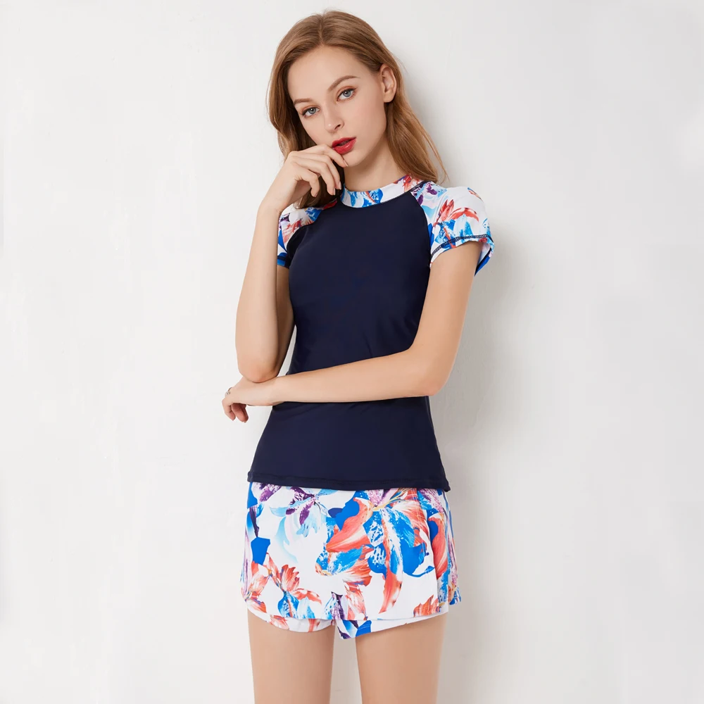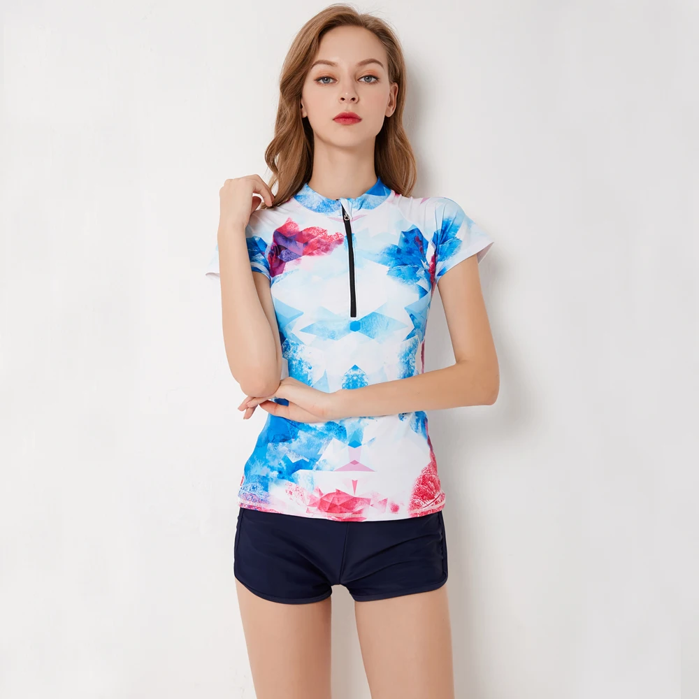 Sexy Zipper Leaf Floral Print Two Piece Swimming Suits Short Sleeve Plus Size Swimwear Female 2018 New Tankini Swimsuits Women