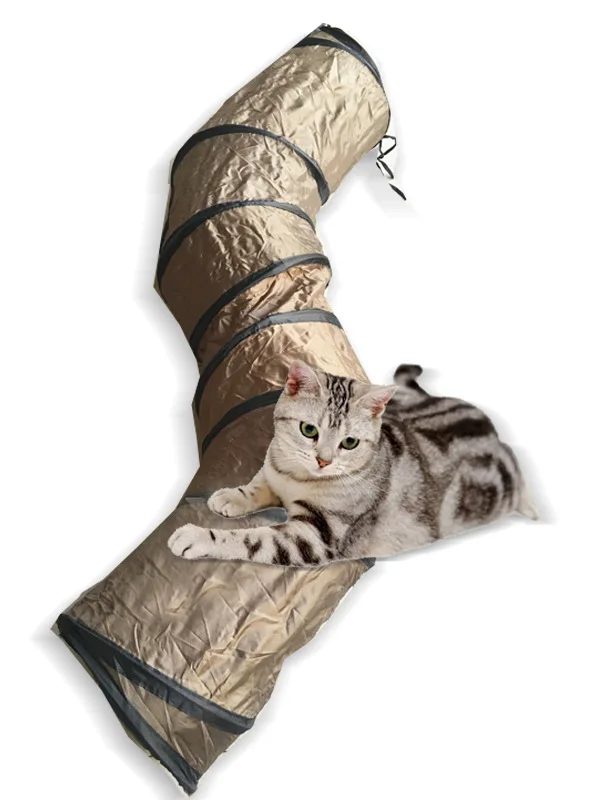 “S”Funny Pet Tunnel Cat Play Tunnel Brown Foldable 1 Holes Cat Tunnel Kitten Cat Toy Bulk Cat Toys Rabbit Play Tunnel