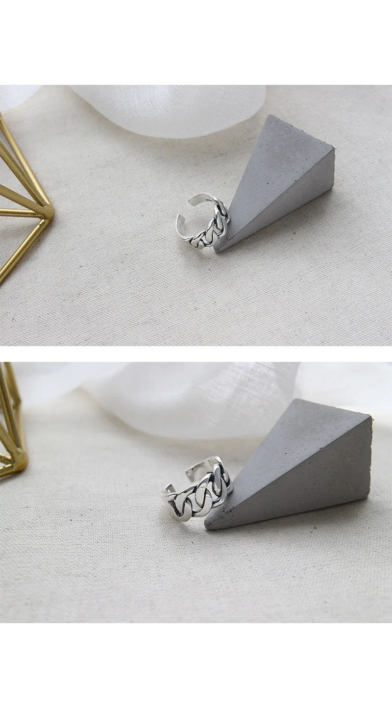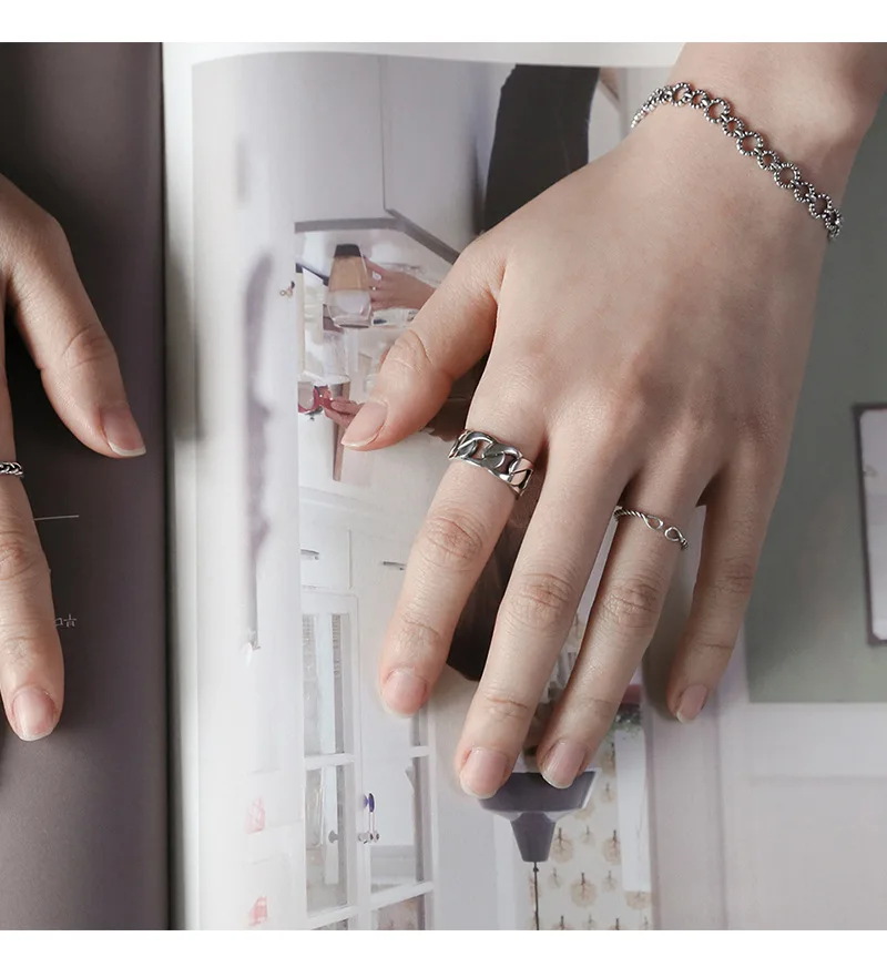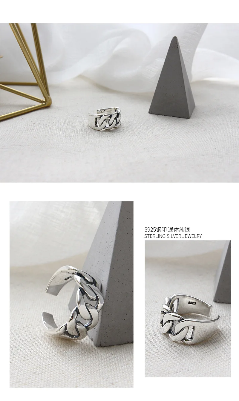SHANICE Wide Antique Thai Silver 925 Sterling Silver Open Rings Flat Chain Adjustable Finger Rings Fashion Silver Jewelry