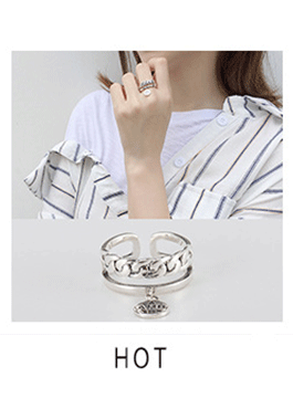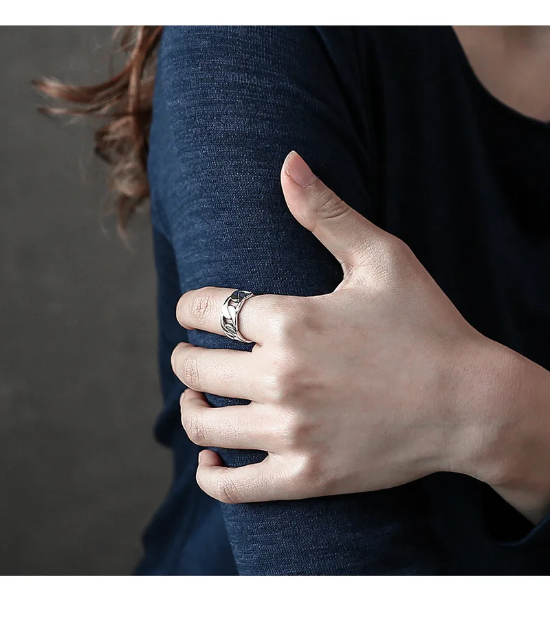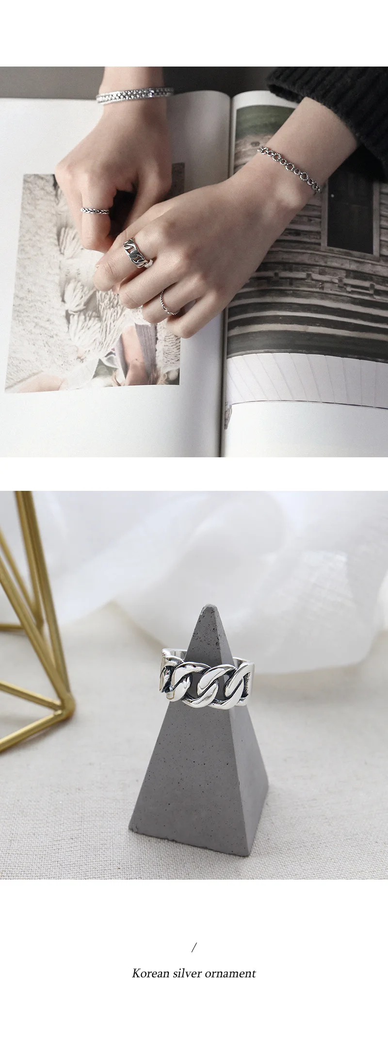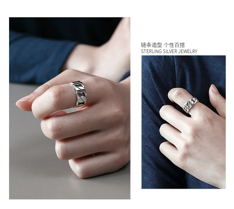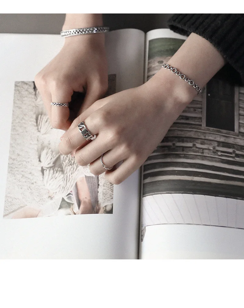 SHANICE Wide Antique Thai Silver 925 Sterling Silver Open Rings Flat Chain Adjustable Finger Rings Fashion Silver Jewelry
