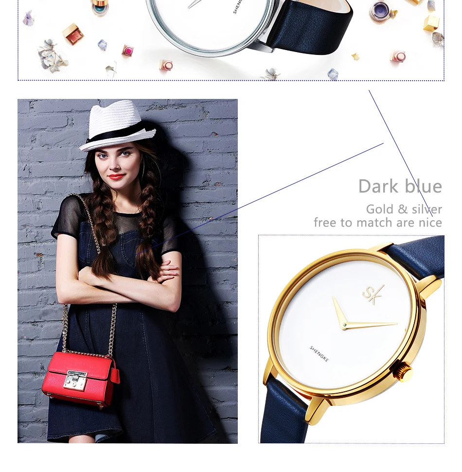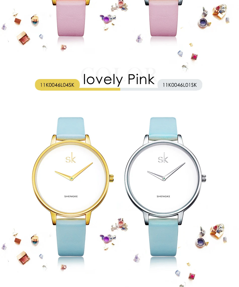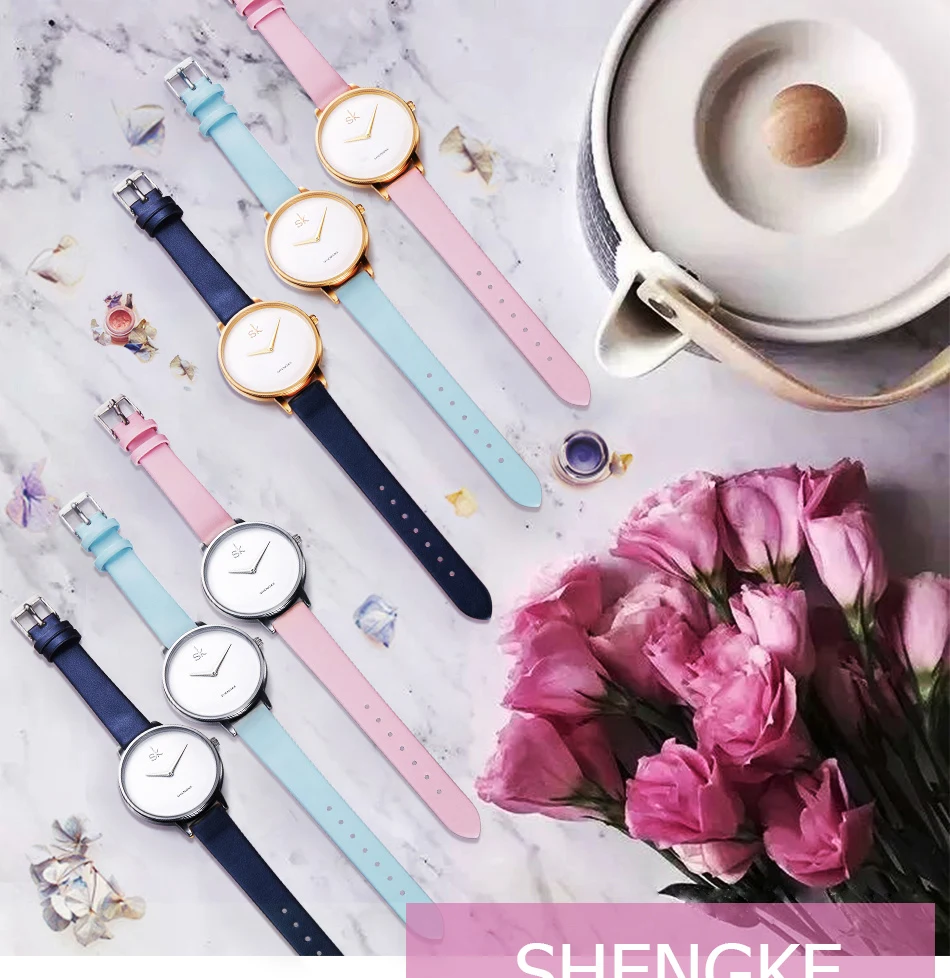 ShengKe 46 Simple Quartz Women Watches Fashion Leather Girls Ladies Wristwatch Montre Femme Zegarek Damski Hodinky Reloj Mujer