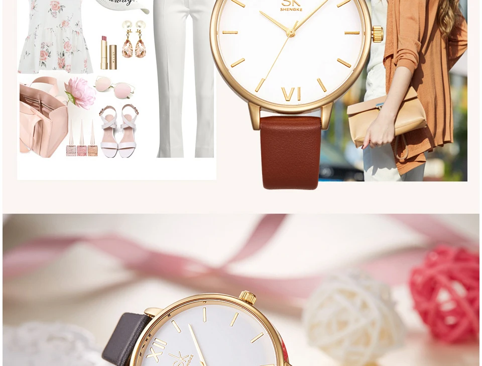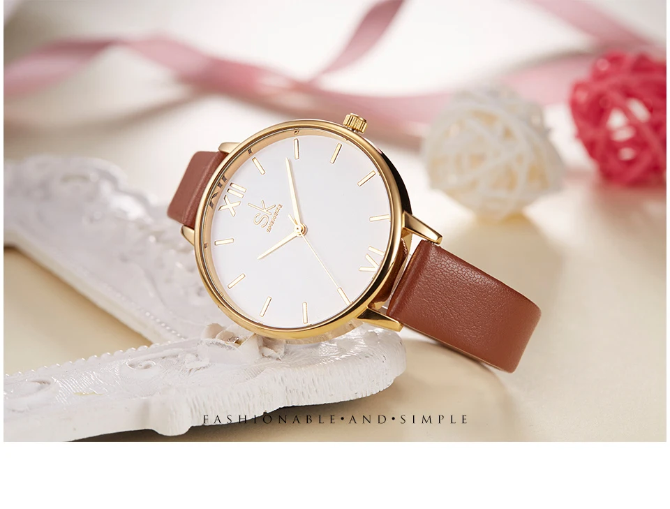 Shengke Watches Women Fashion Watches Top Brand Luxury Quartz Clock Women Casual Leather Wrist Watch 2018 SK Montre Femme #K0056
