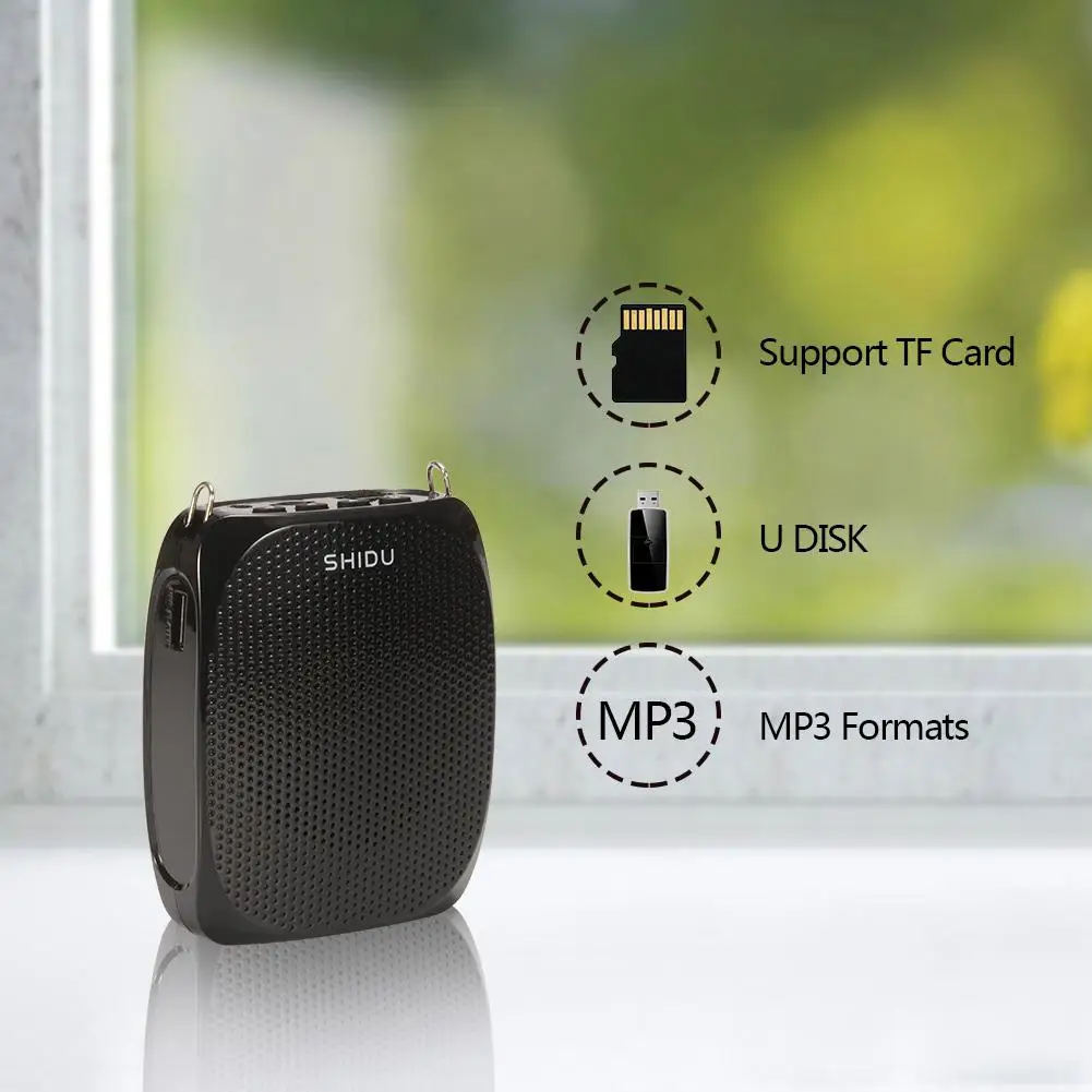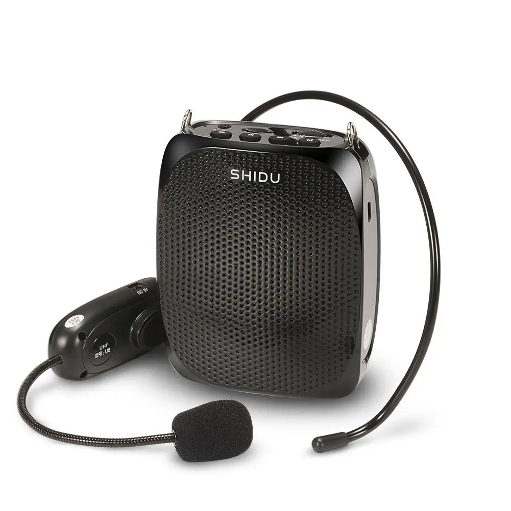 SHIDU 10W UHF Wireless Voice Amplifier with Comfortable Headset Waist Neck Band and Belt Clip for Teachers Tour Guides