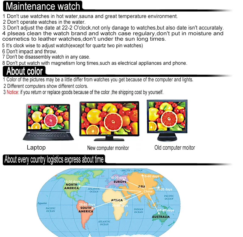 SIHAXIIN wooden watch is due to 100% natural bamboo and wood handicrafts,there maybe some spots of the bamboo,but not a quality problem. Color of the pictures may be a little differ from watches you get ,because of differ computer light.