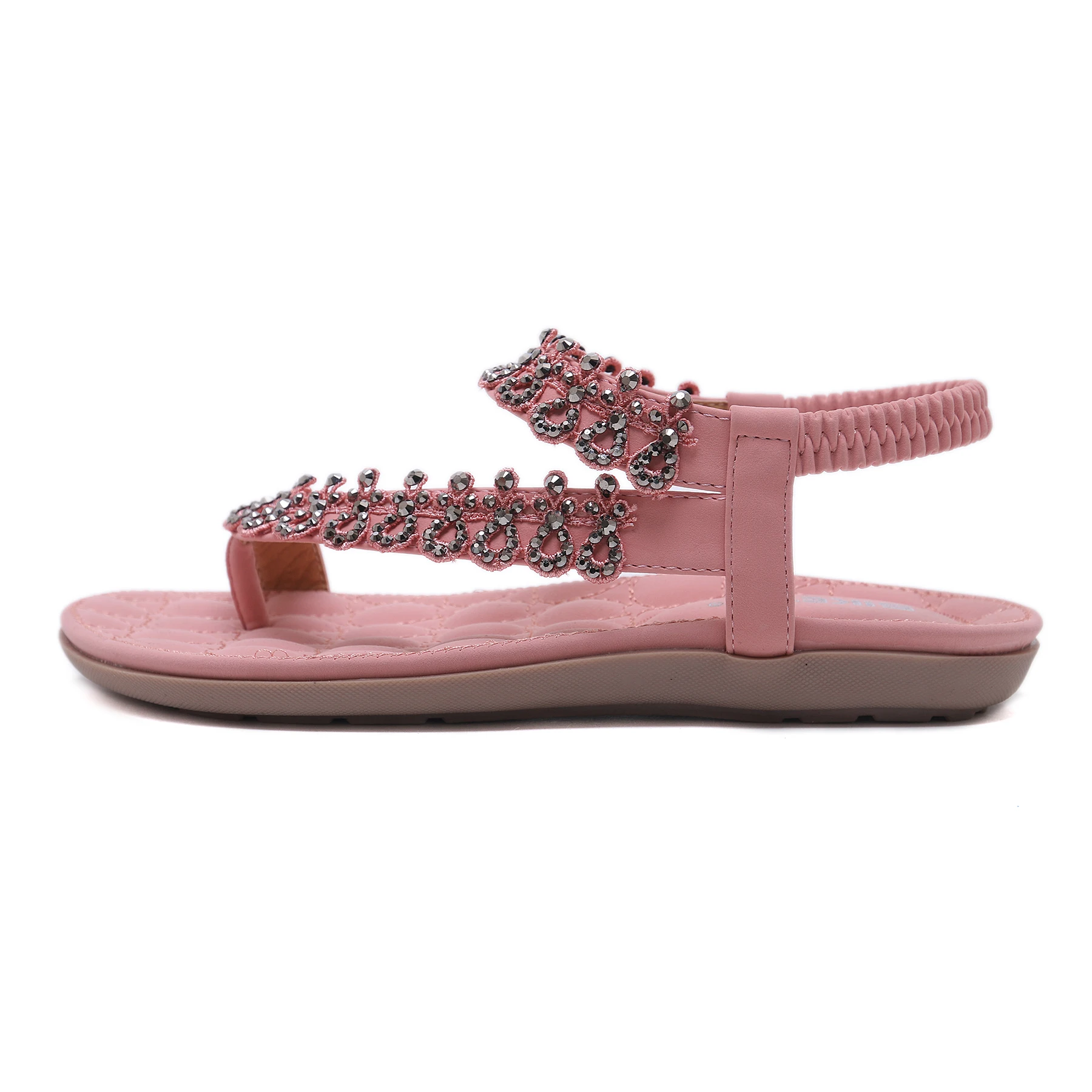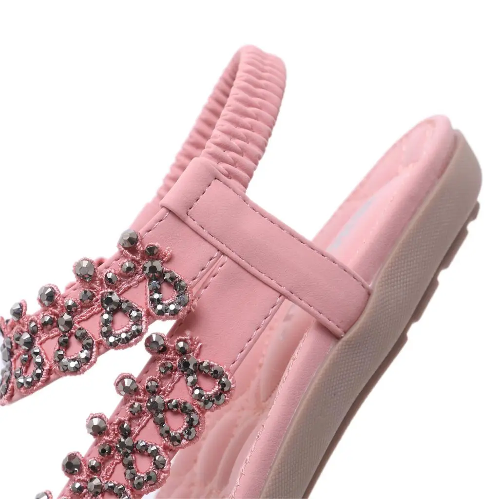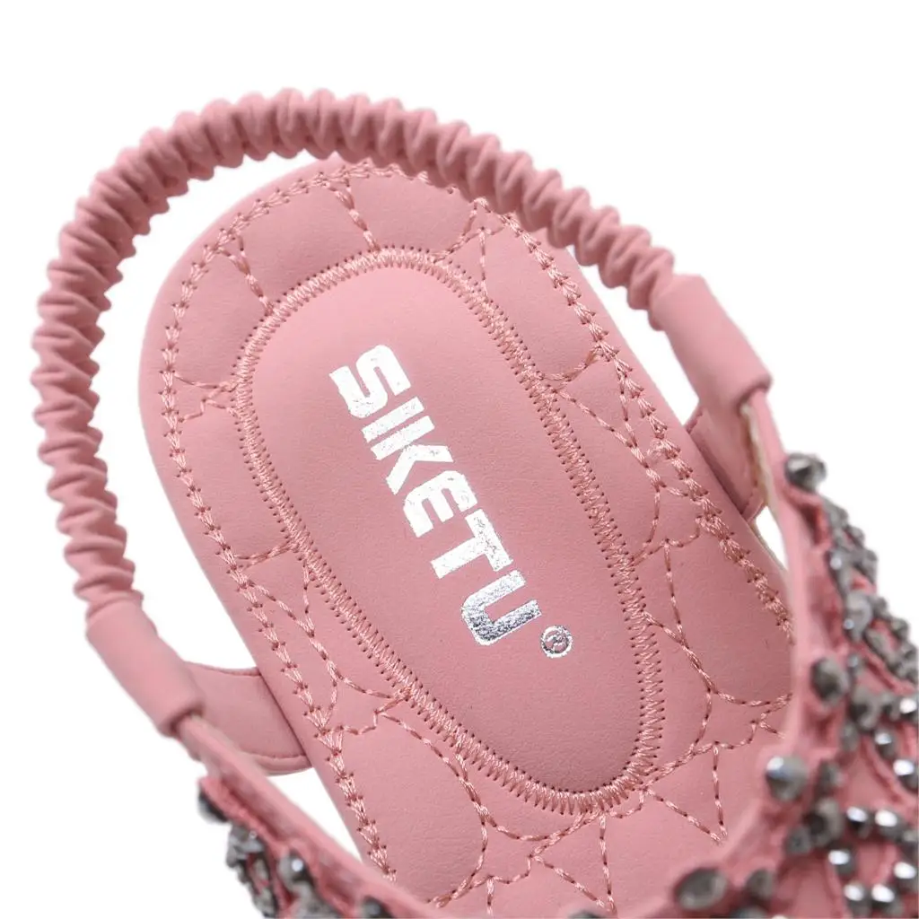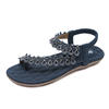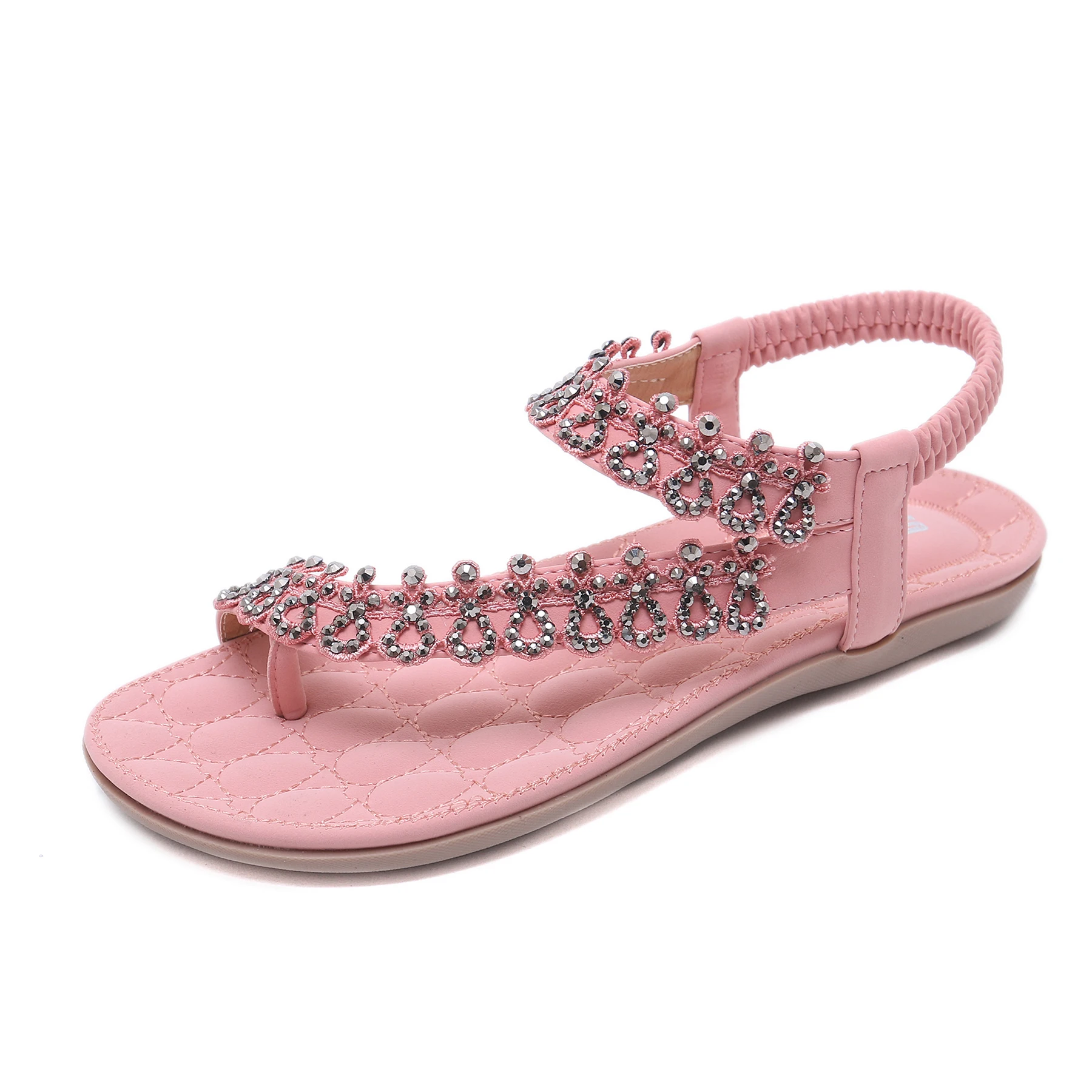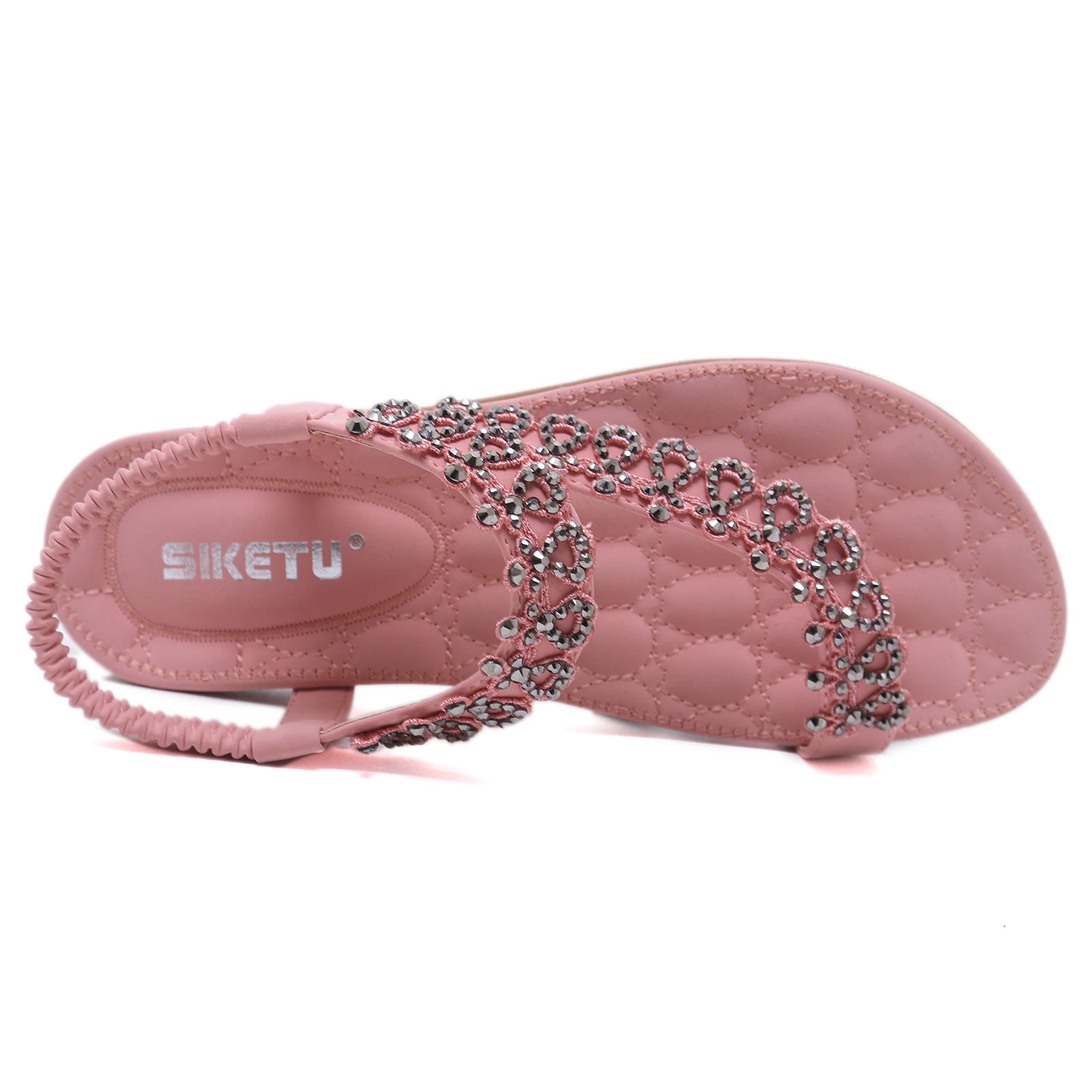 SIKETU New Ethnic Sandals Bohemian Rhinestone Flowers Diamond Large Size 42 Flat Sandals Summer Sandals Flip Flops Shoes Women