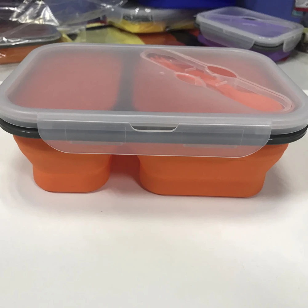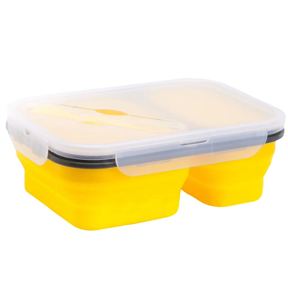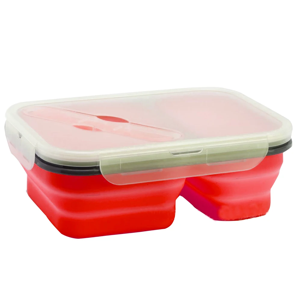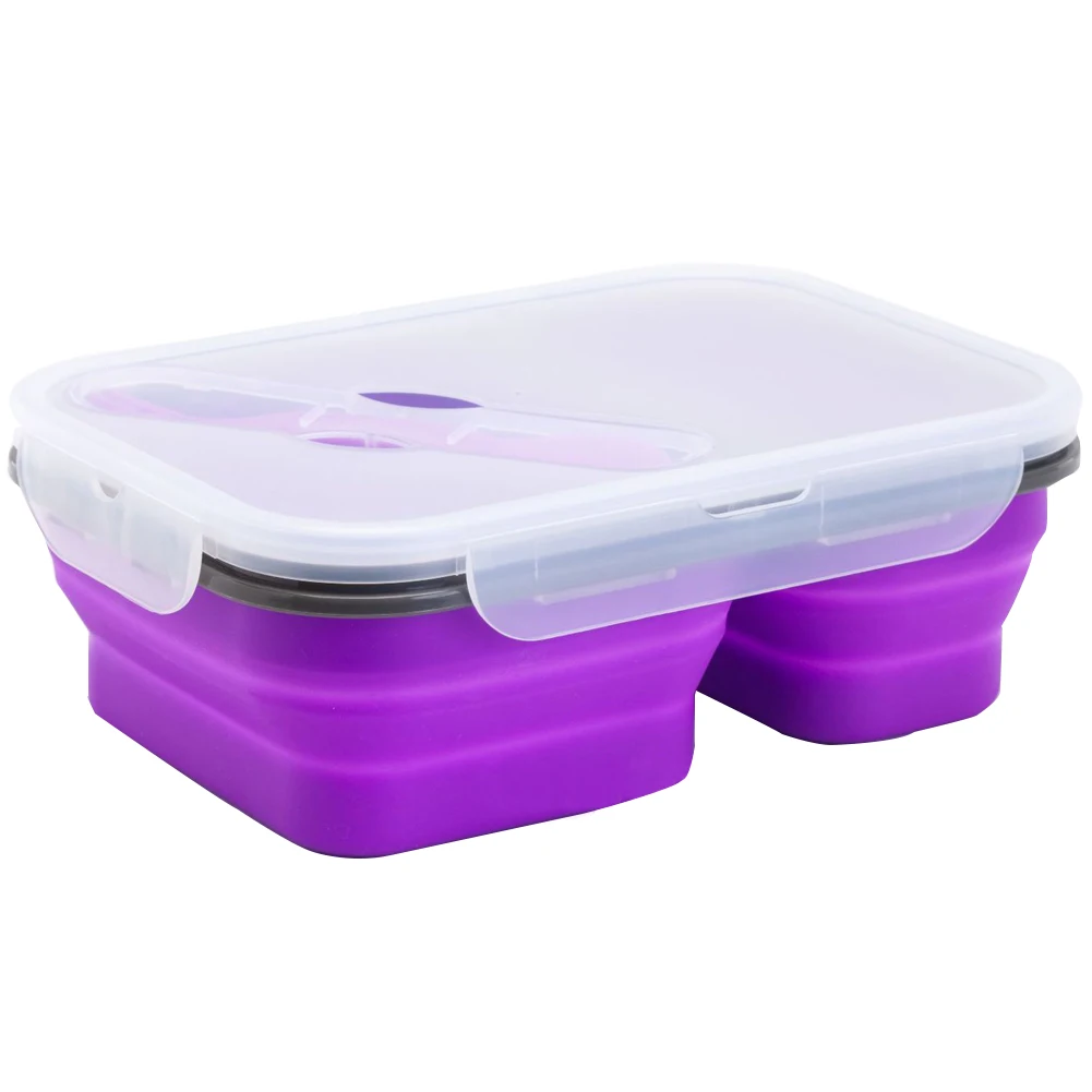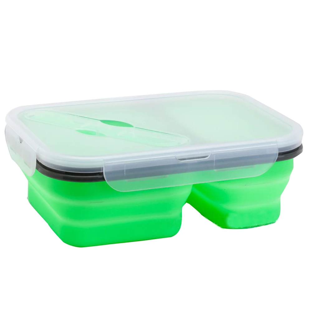 1 X 2-compartment silicone folding lunch box with spoon fork