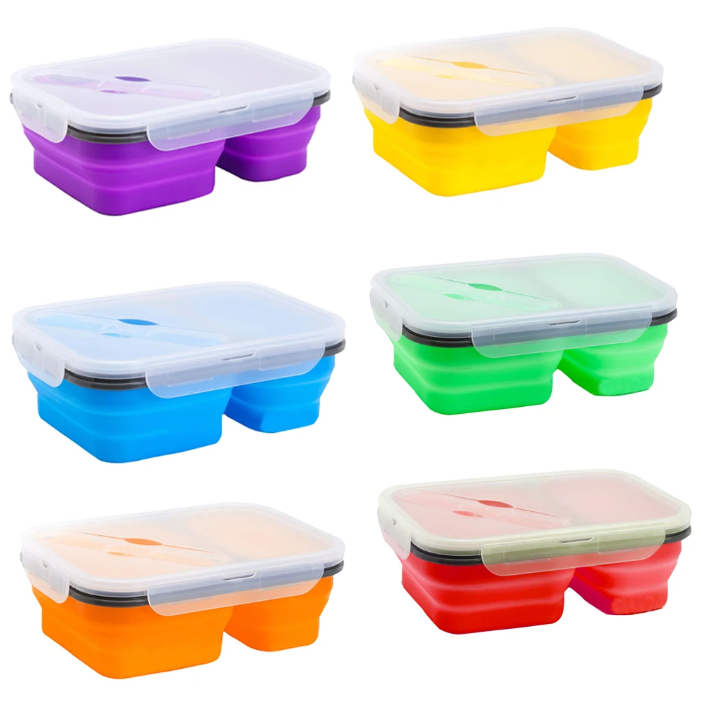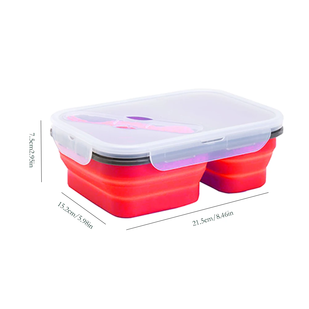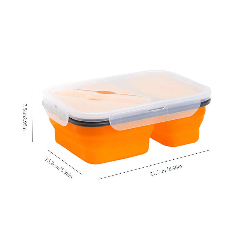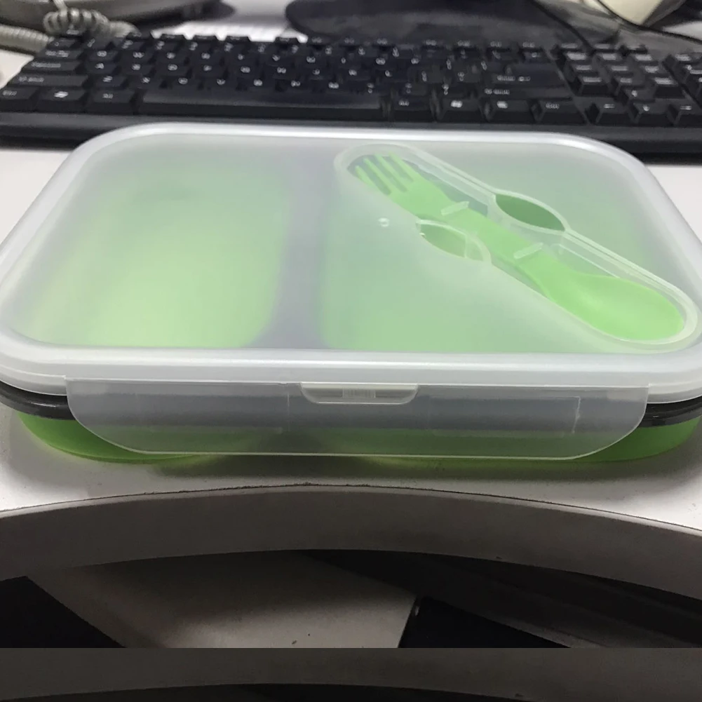 1 X 2-compartment silicone folding lunch box with spoon fork