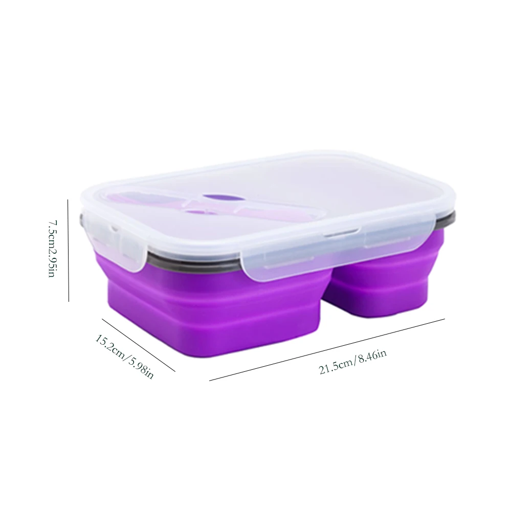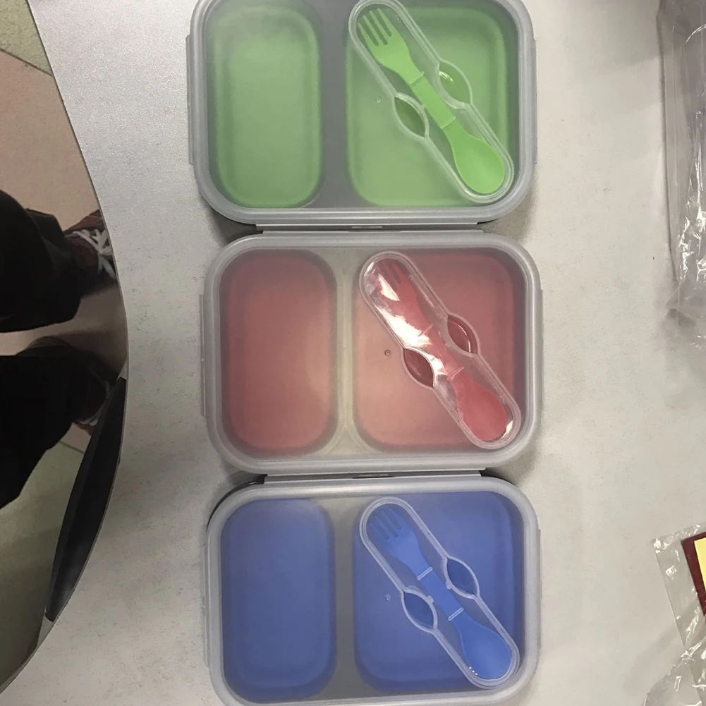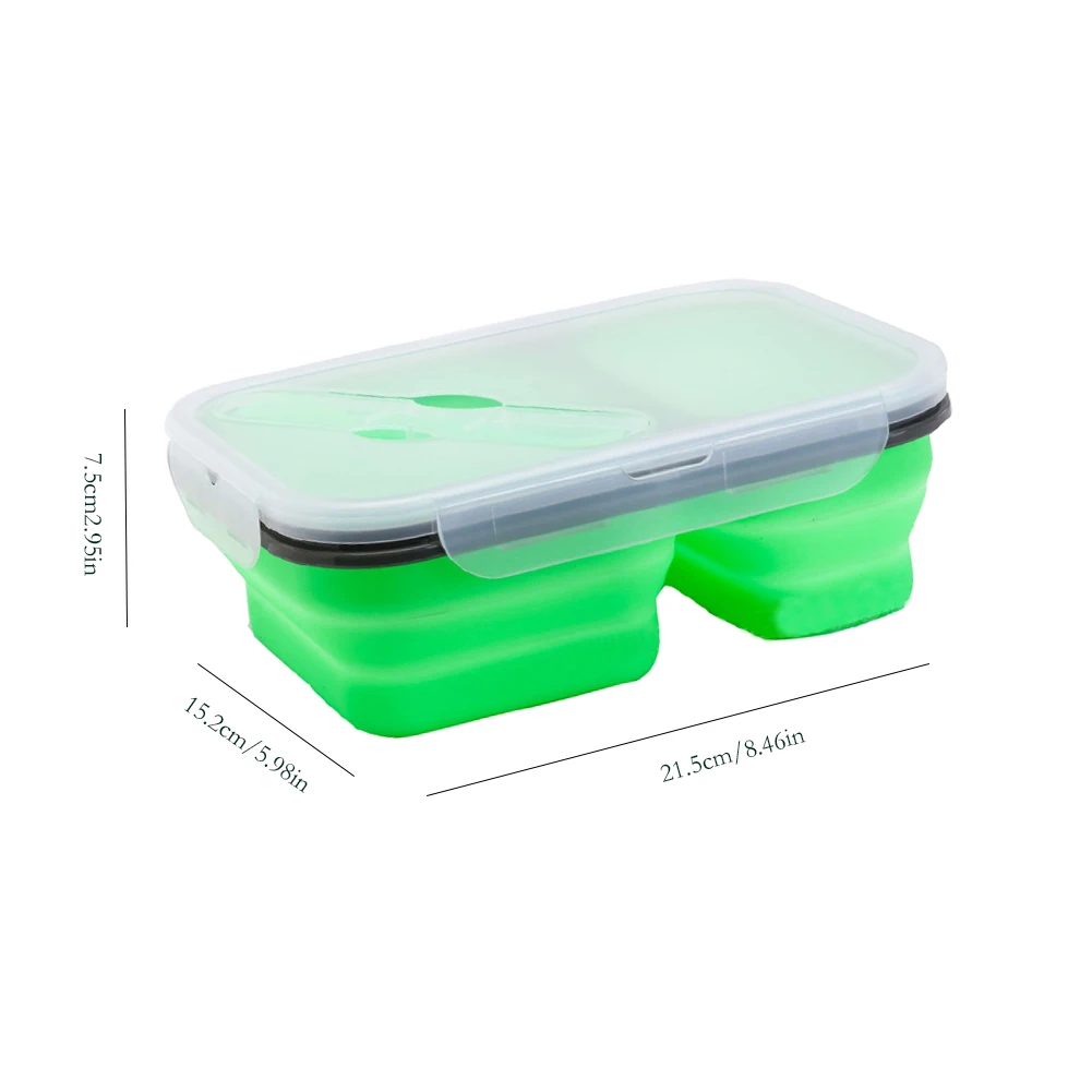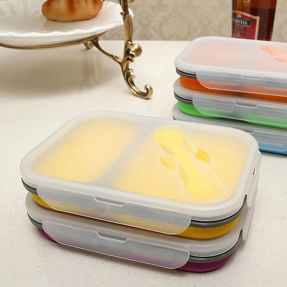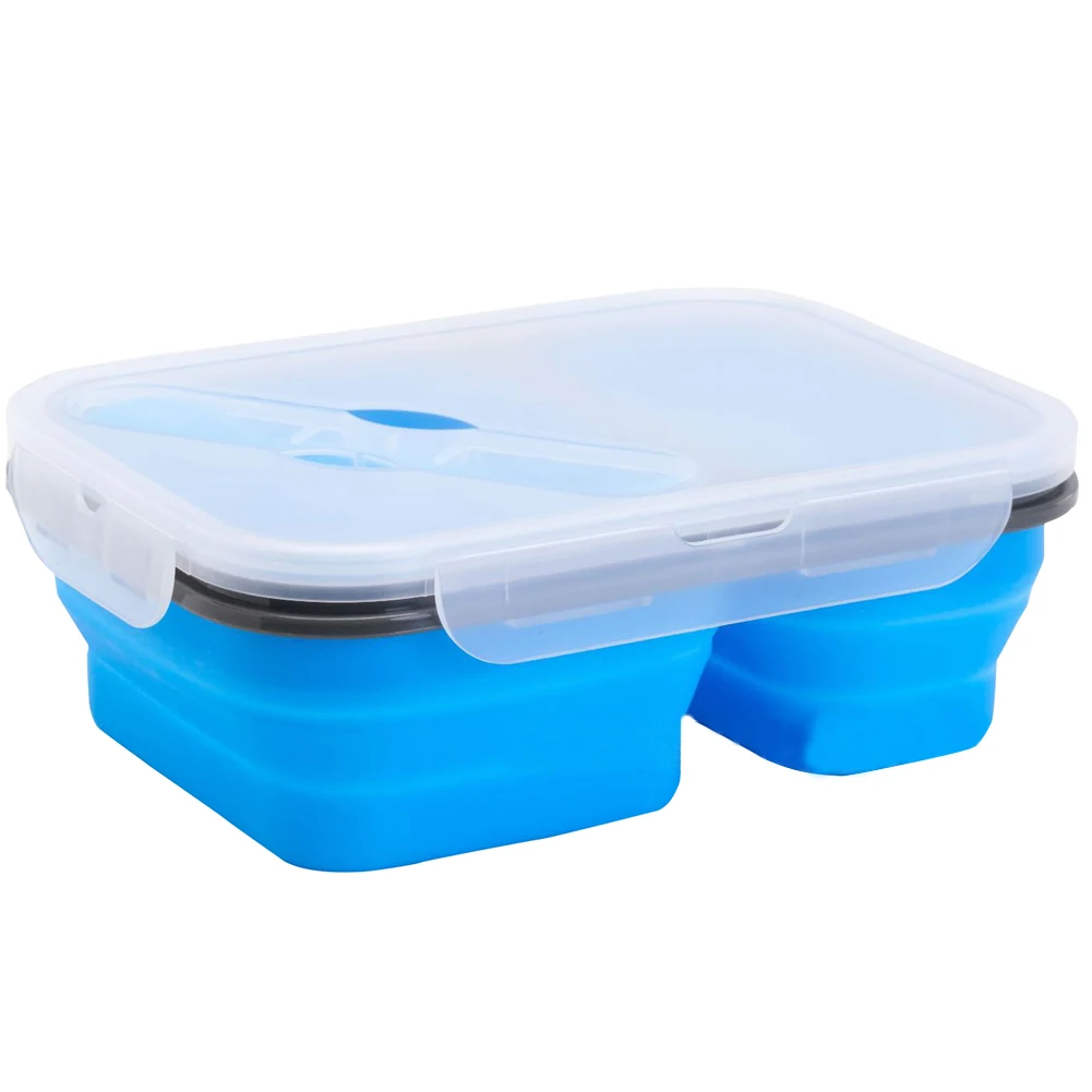 1 X 2-compartment silicone folding lunch box with spoon fork