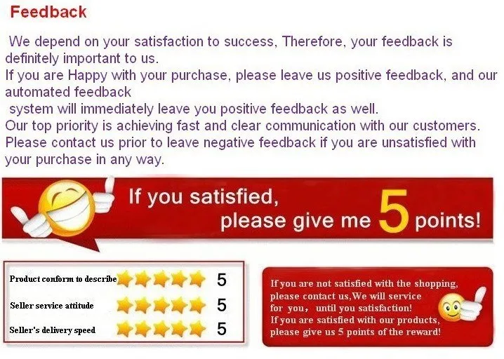 • If you have any problem after receive our good, please contact us instead of leave a Negative evaluation. we will try our best to make you satisfied. Thank you!