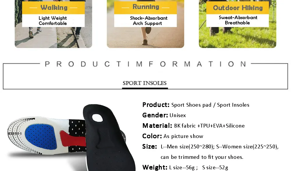 Soft, comfortable, shock absorption,Suitable for sports shoes.