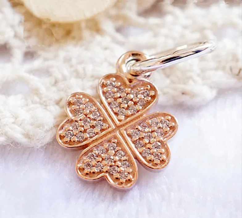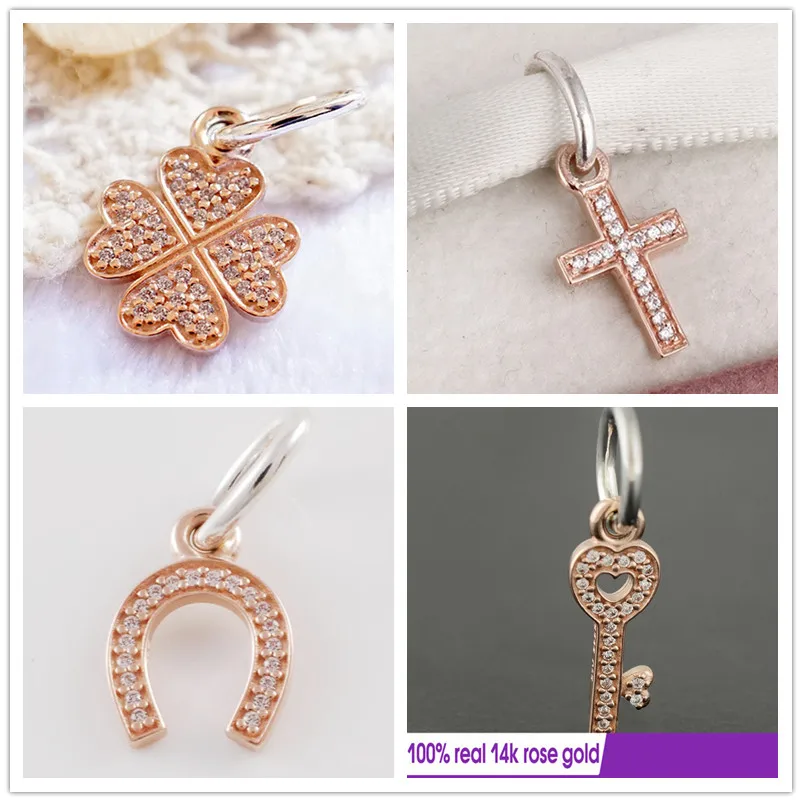 Silver&14k Rose Gold Symbol of Luck Faith & Trust Charms beads Fit 925 sterling silver bracelets necklace DIY Assessories GD050