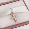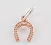 Detail Name: Silver&14k Rose Gold Symbol of Luck Faith & Trust Charms beads Fit 925 sterling silver bracelets necklace DIY Assessories GD050