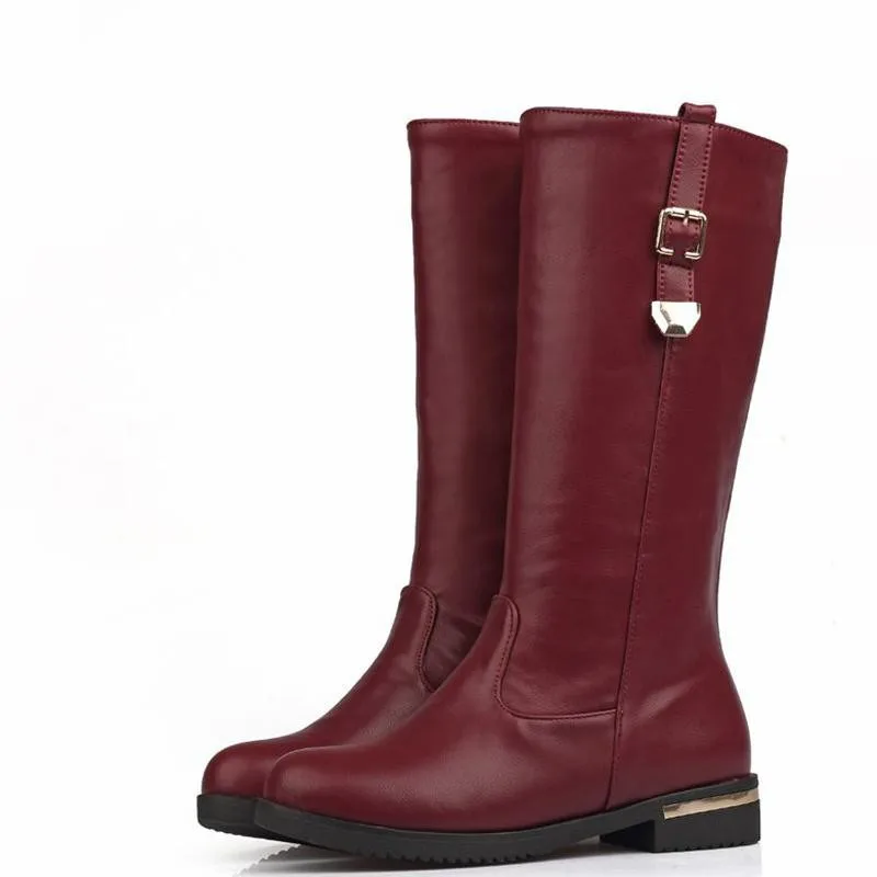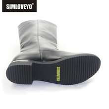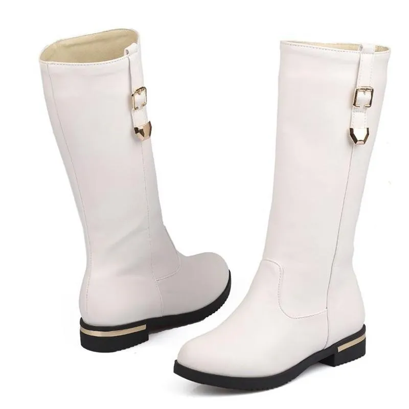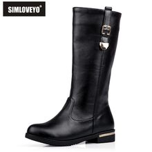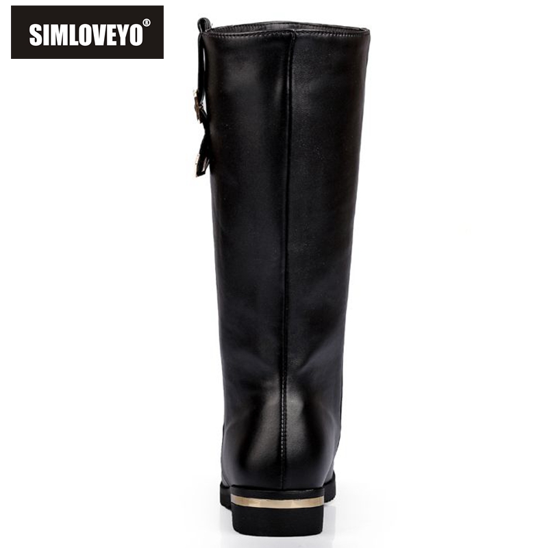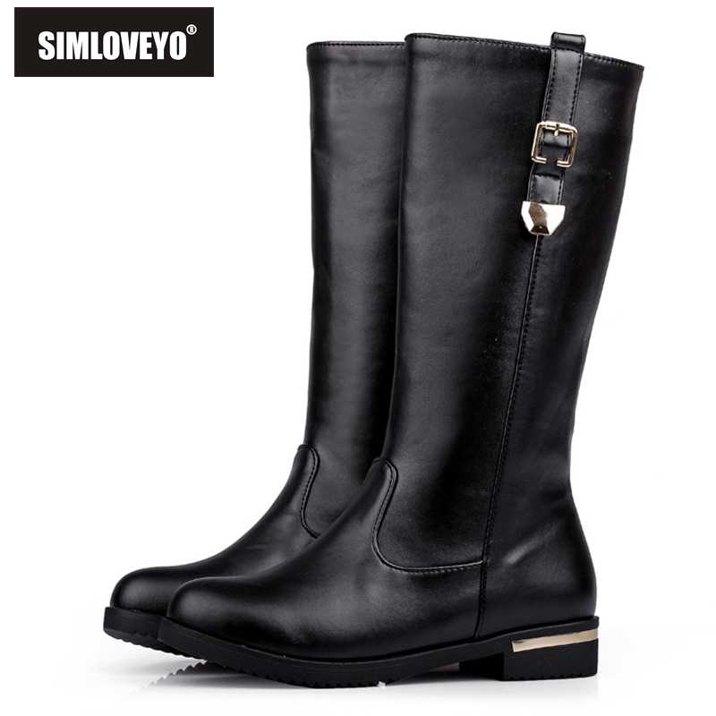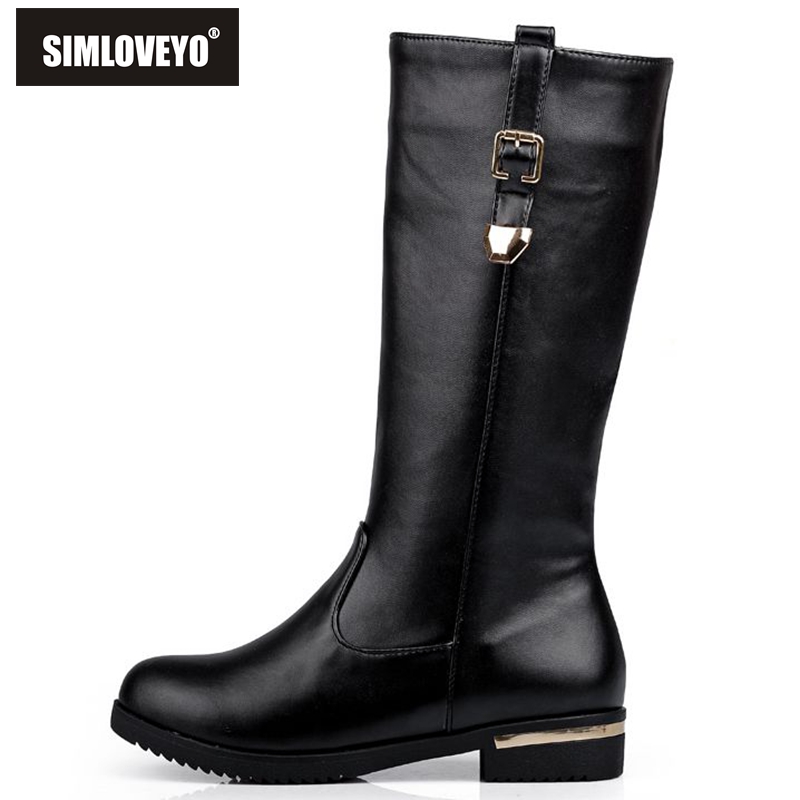 SIMLOVEYO Autumn winter boots Woman half knee boots flat Female Fashion boots Buckle Black White Red Fashion Hot Big size QH3429