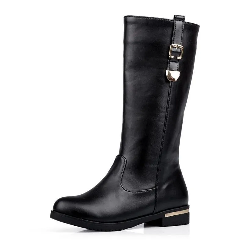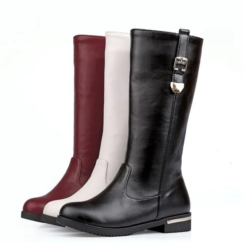 SIMLOVEYO Autumn winter boots Woman half knee boots flat Female Fashion boots Buckle Black White Red Fashion Hot Big size QH3429