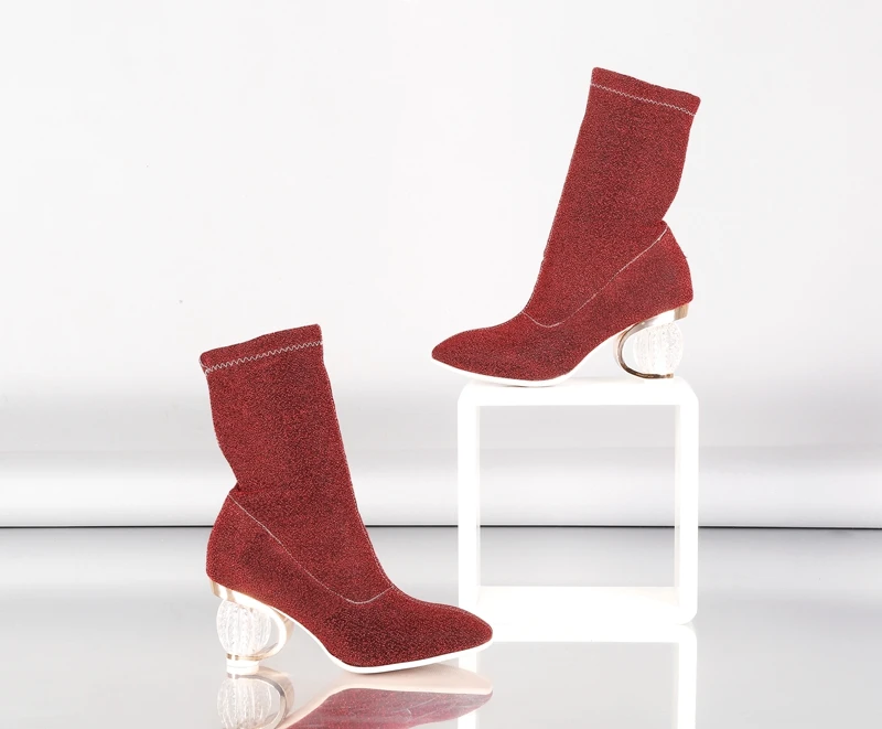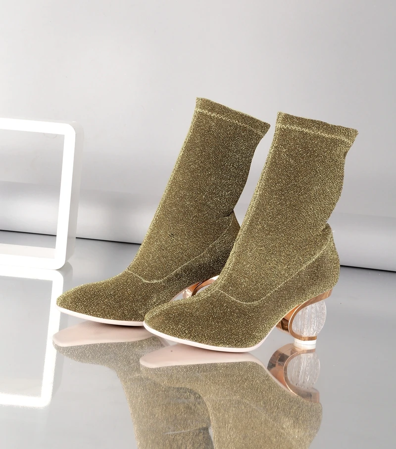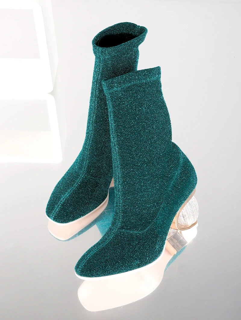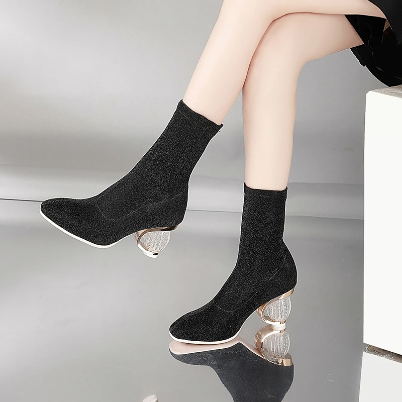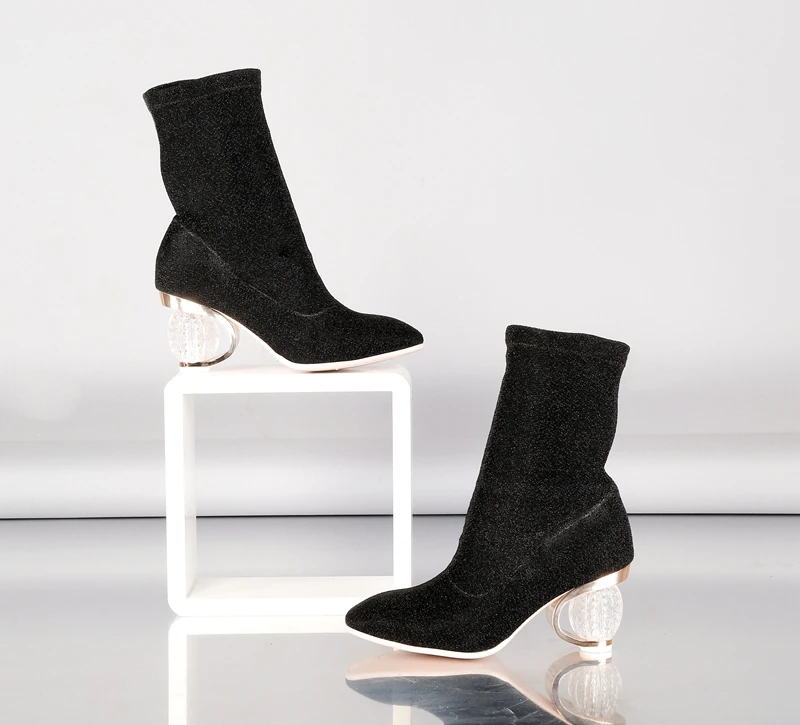 SIMLOVEYO Women Boots 2018 Spring Autumn Sock Boots Clear Heel Woman High Heels Booties Transparent Ankle Boots Botas mujer B704