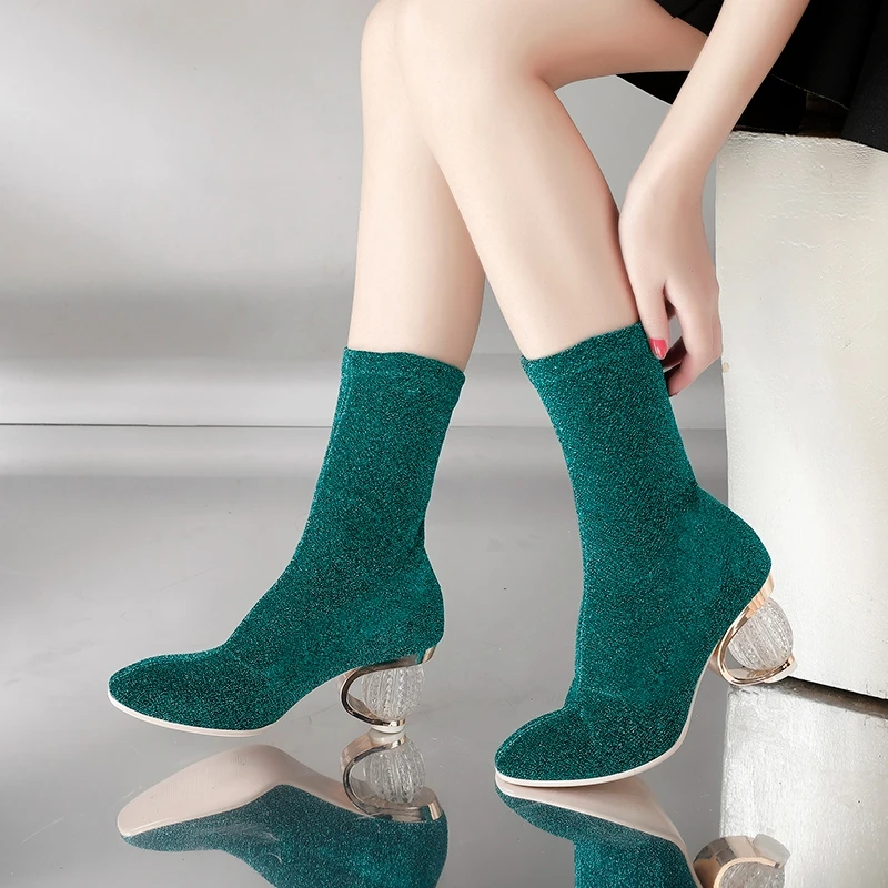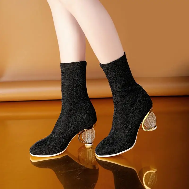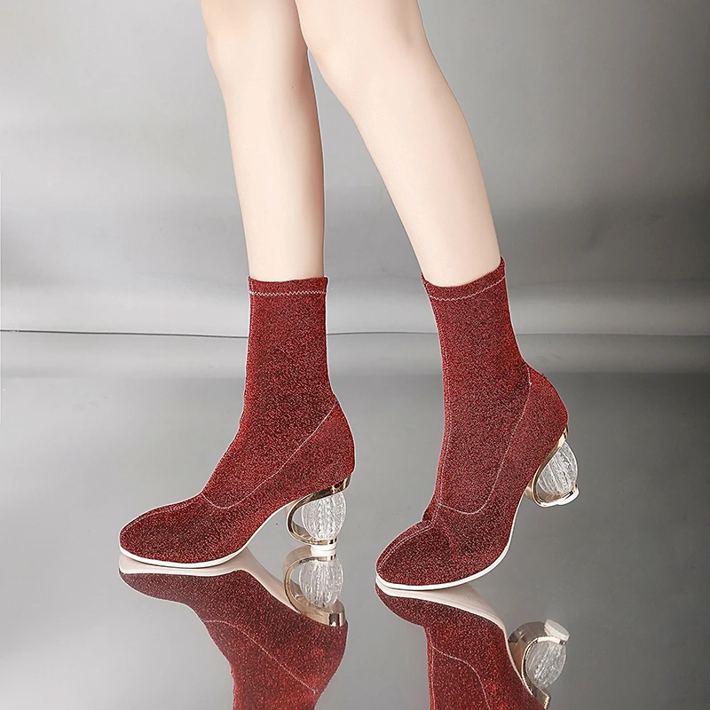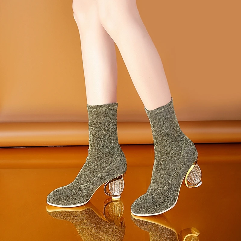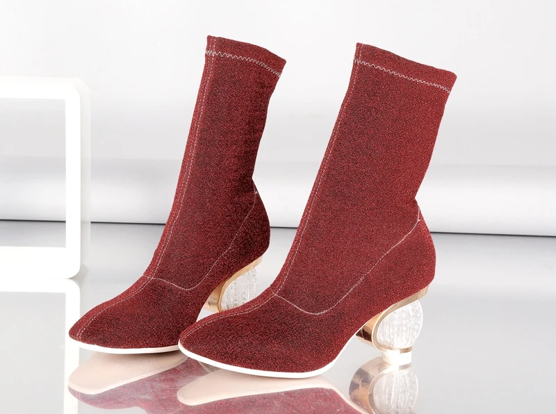 SIMLOVEYO Women Boots 2018 Spring Autumn Sock Boots Clear Heel Woman High Heels Booties Transparent Ankle Boots Botas mujer B704