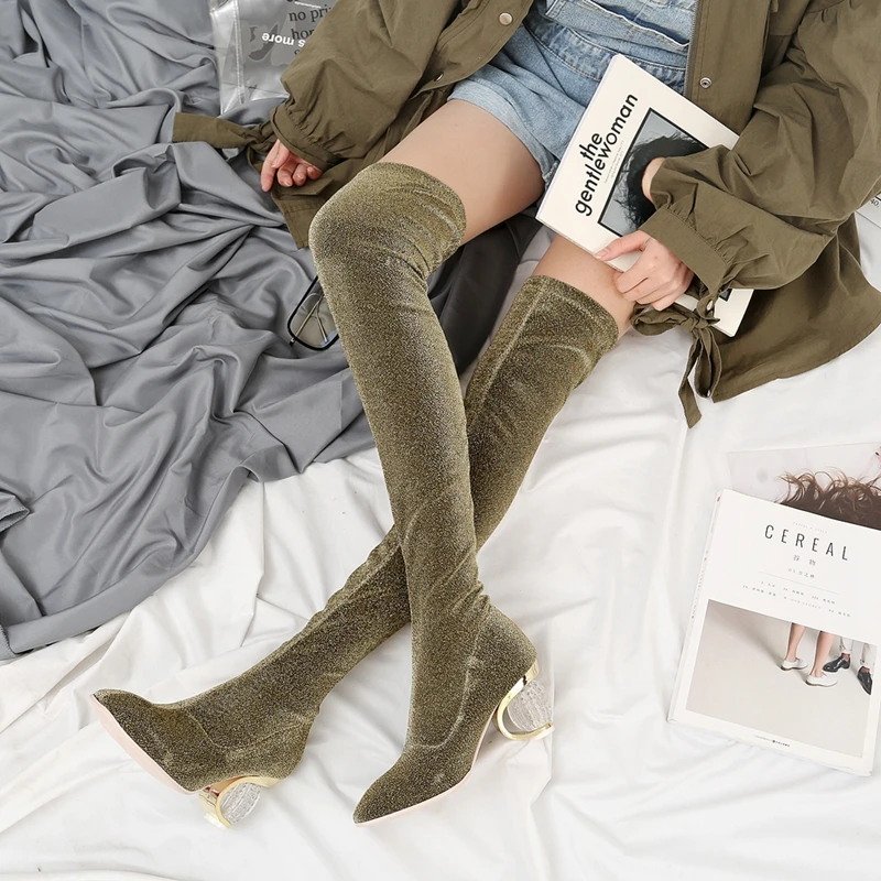 SIMLOVEYO Women Boots Stretch Slim Thigh High Boots female Sexy Over the Knee Boots High Heel Shoes Botas feminino mujer B706
