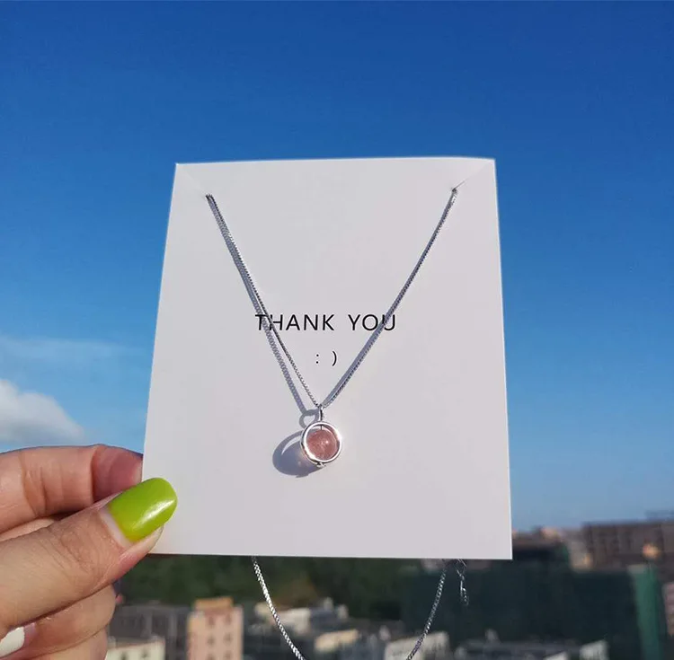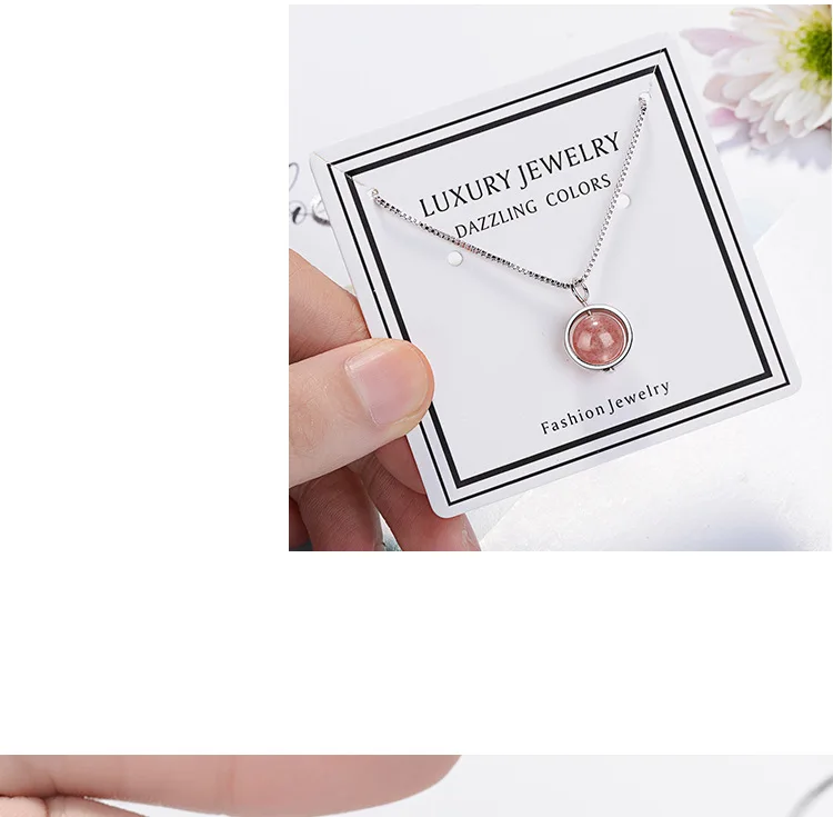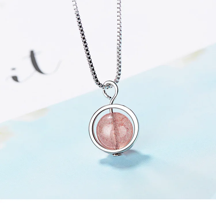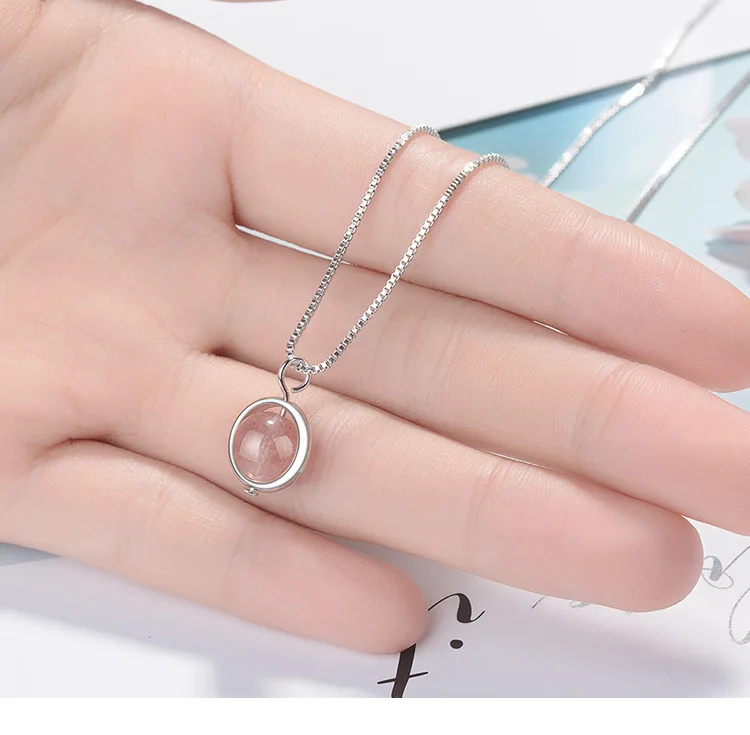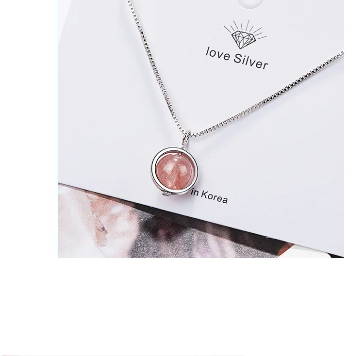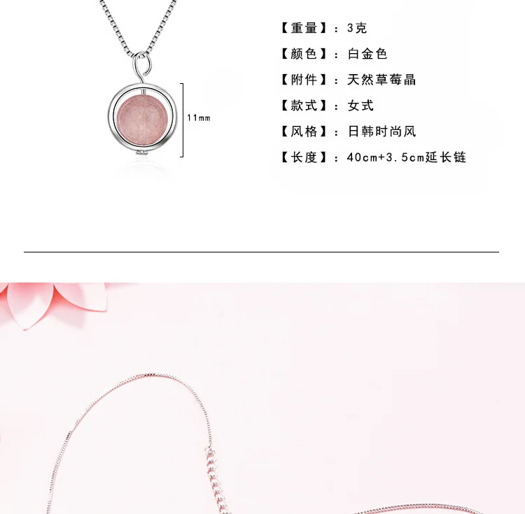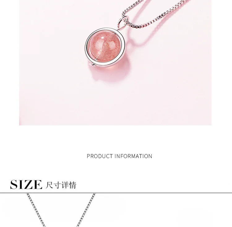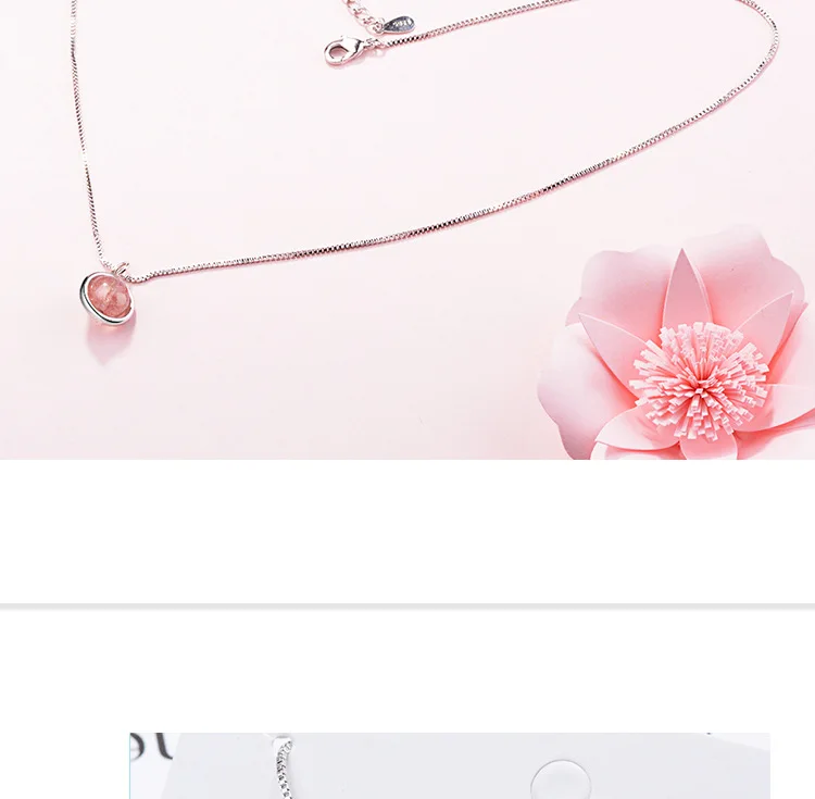 Simple Pink Natural Strawberry Crystal Female Stroke Peach 925 Sterling Silver Jewelry Beads Clavicle Chain Necklaces H353