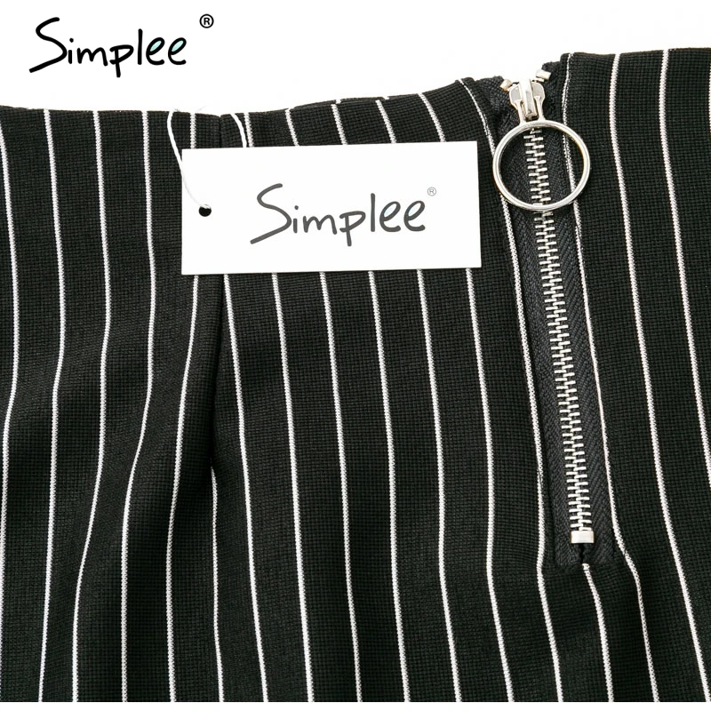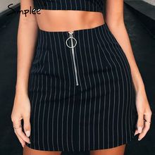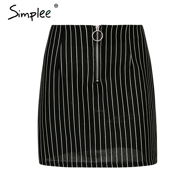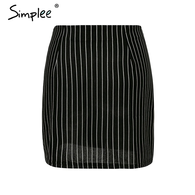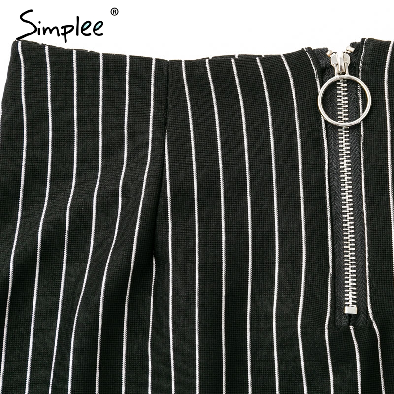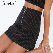 Simplee Bodycon black striped plus size sexy skirt autumn Zipper A-line pencil skirt korean female High waist women short skirt