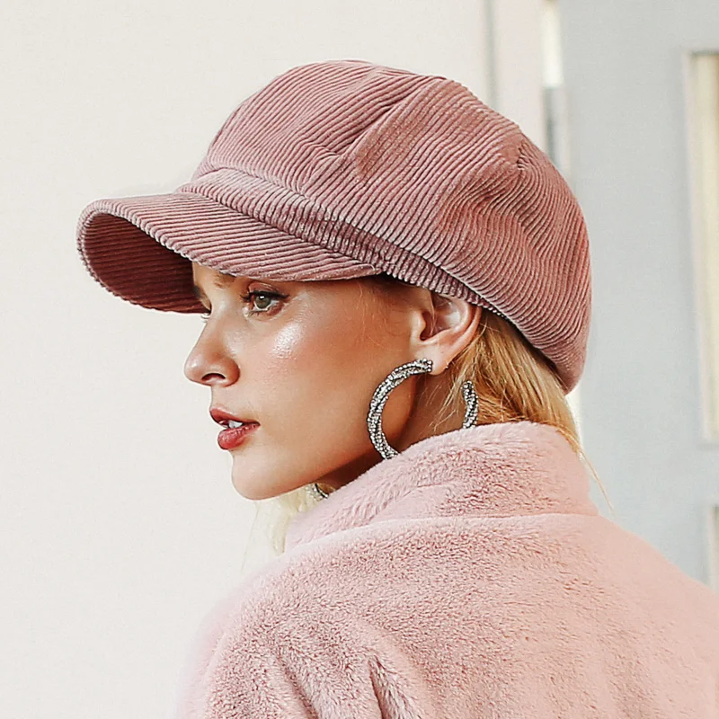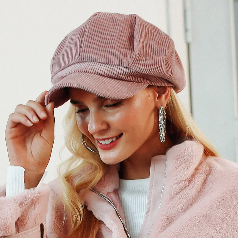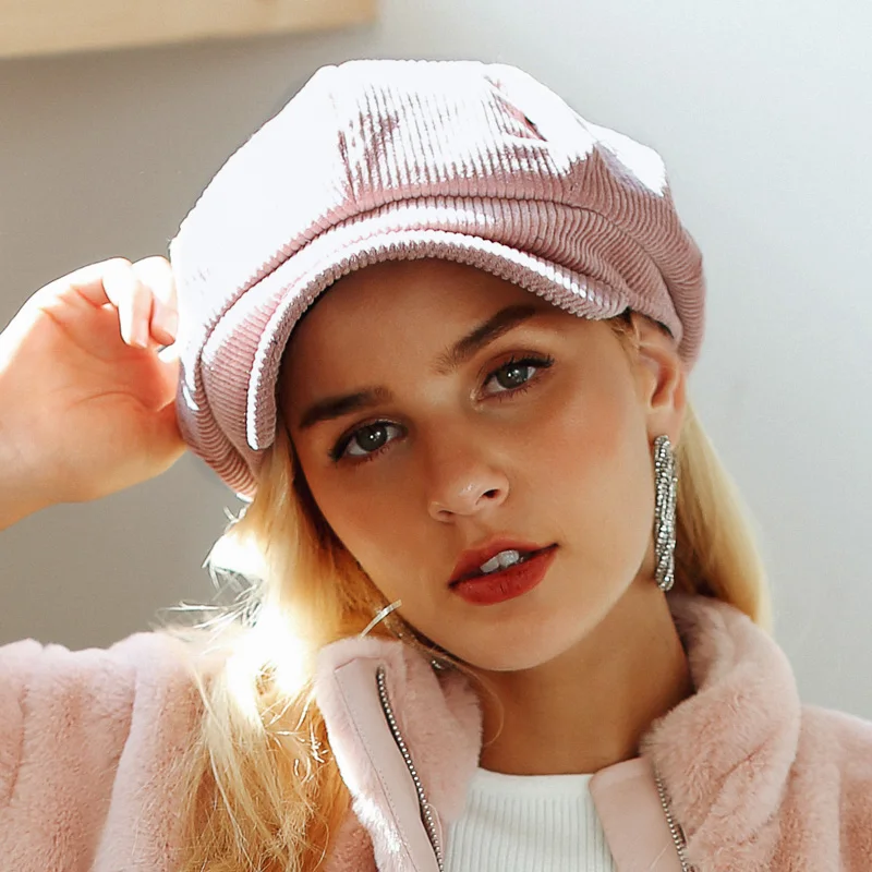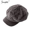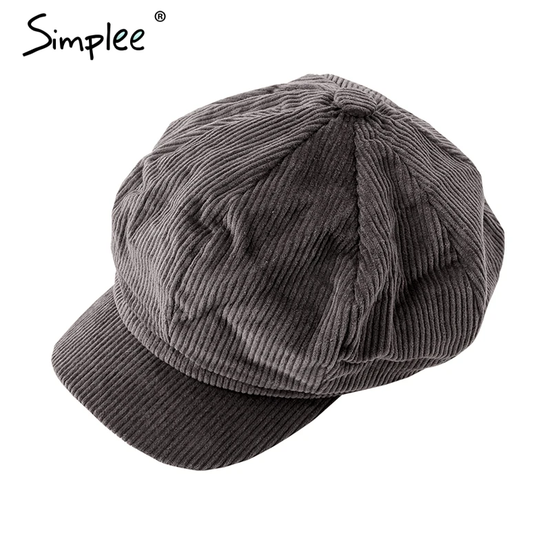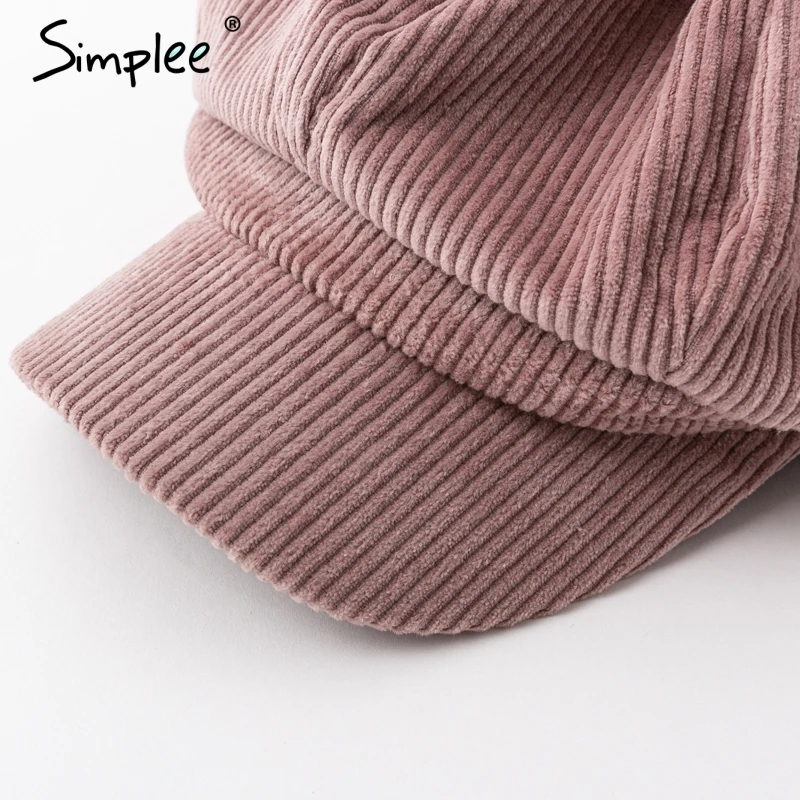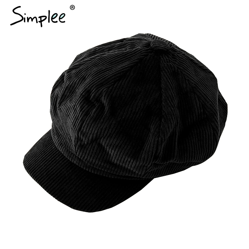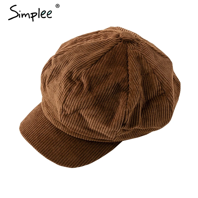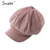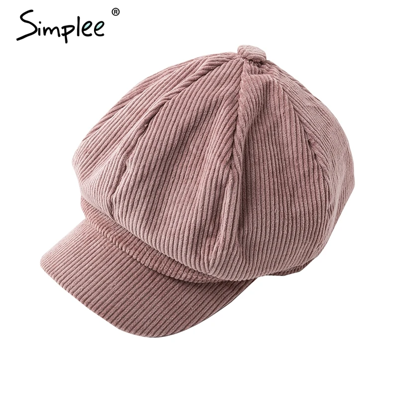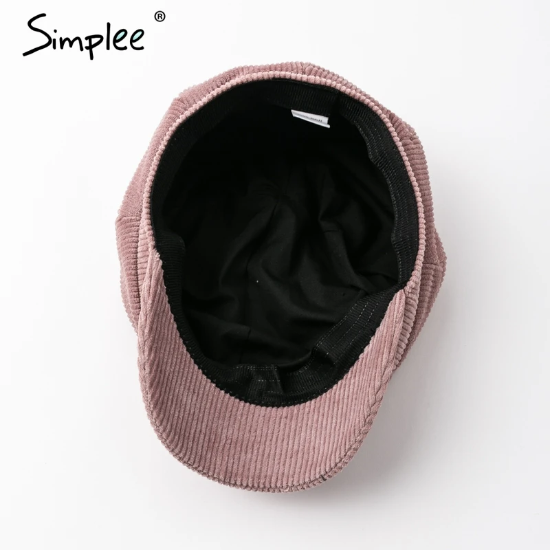 Simplee Corduroy beret female flat cap hats for Women fashion cap casual style beret boina feminina autumn winter beret hat 2018