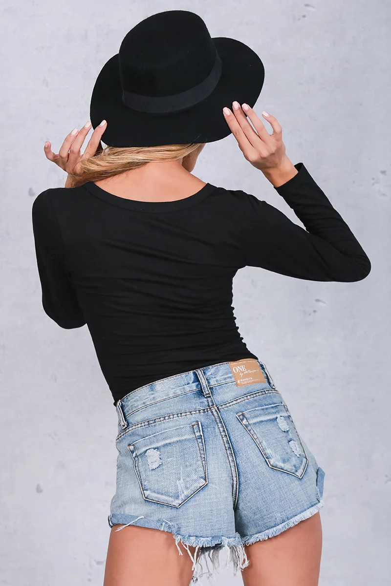 Bodysuit can be any girl’s best friend can be with denim shorts,