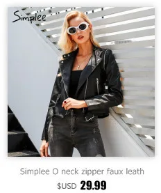 Simplee Leather suede faux leather jacket Zipper cool jacket Streetwear black PU jackets Autumn winter 2018 women coat