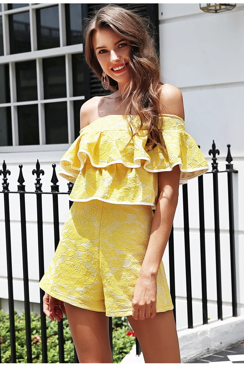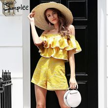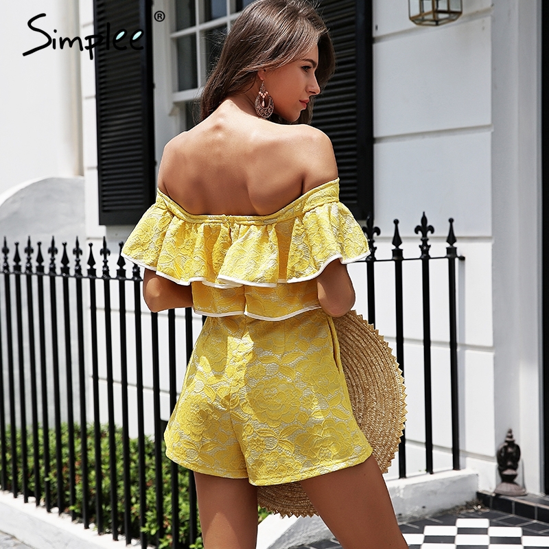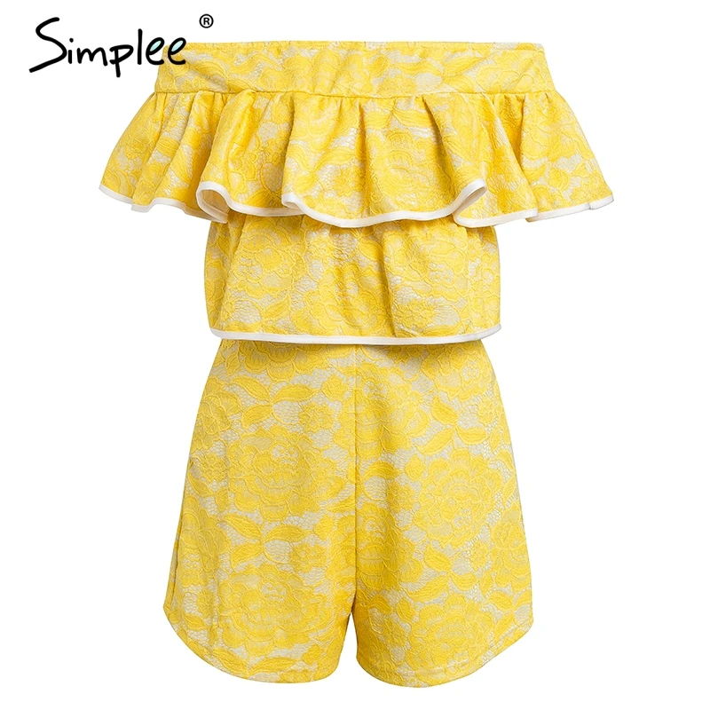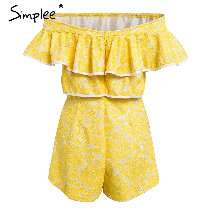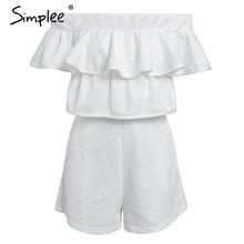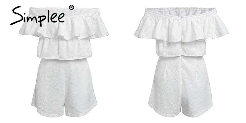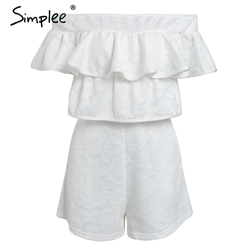 Simplee Off shoulder boho lace rompers womens jumpsuit Ruffle elegant white playsuit Summer beach short jumpsuit 2018