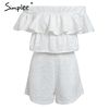 Simplee Off shoulder boho lace rompers womens jumpsuit Ruffle elegant white playsuit Summer beach short jumpsuit 2018