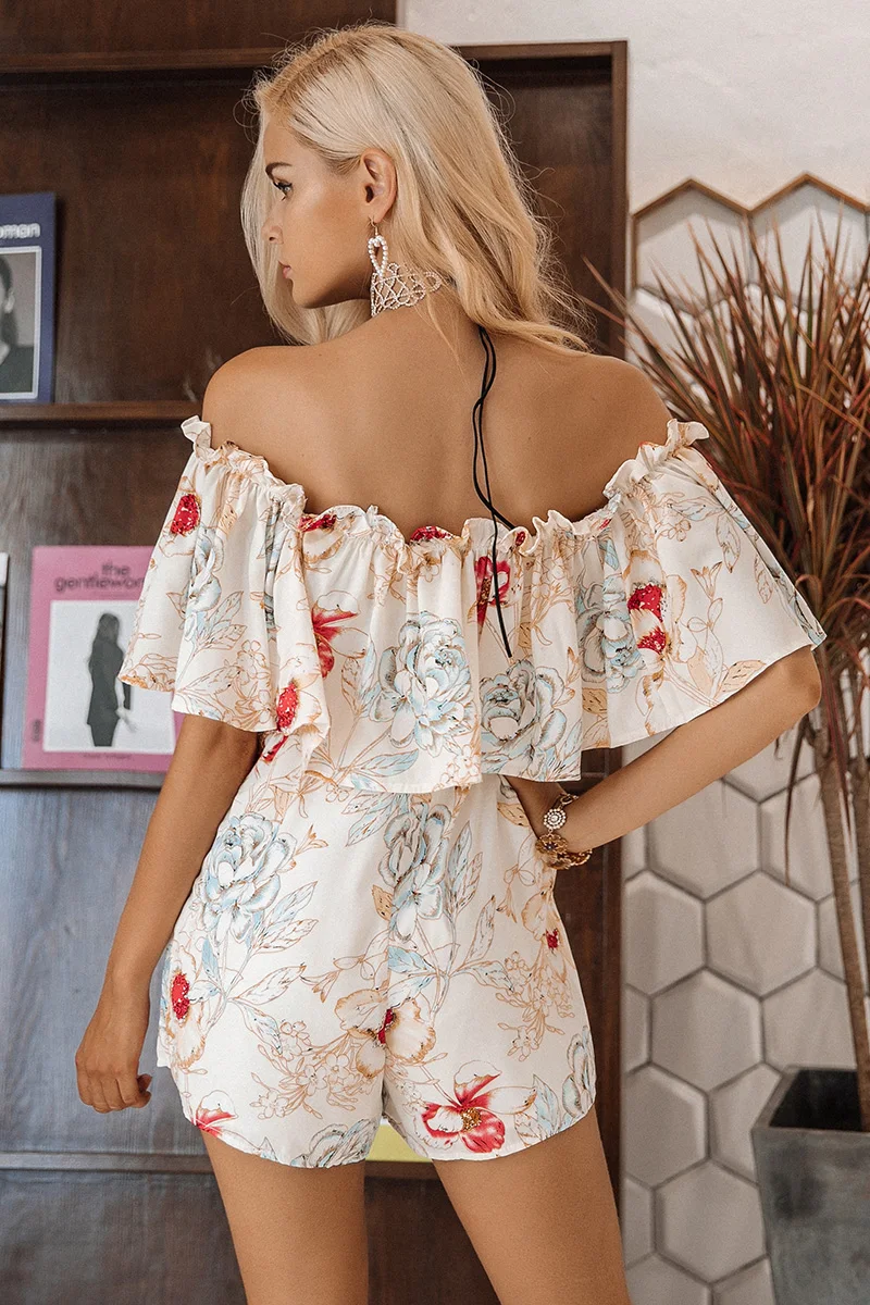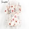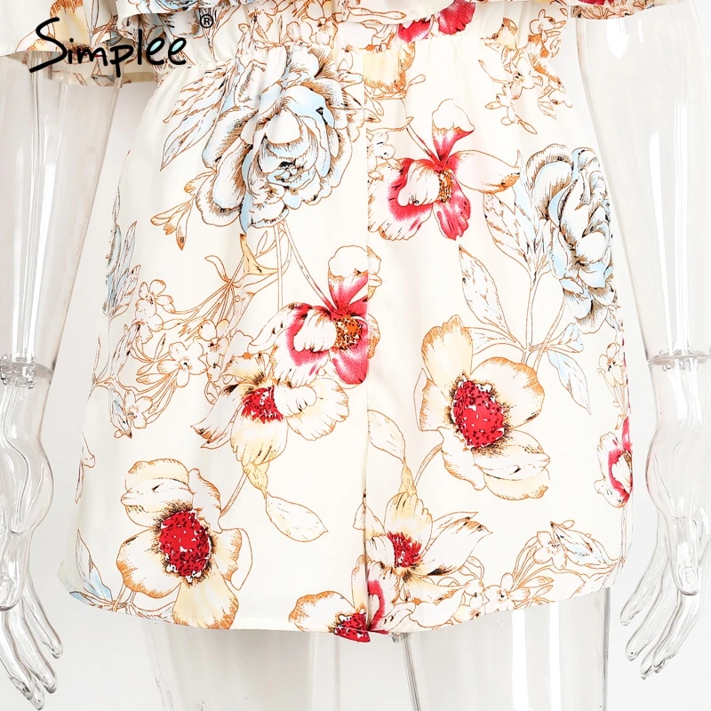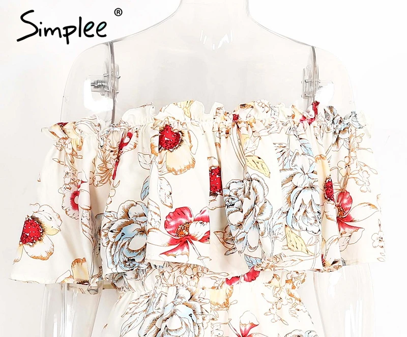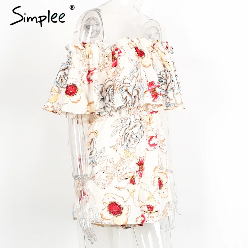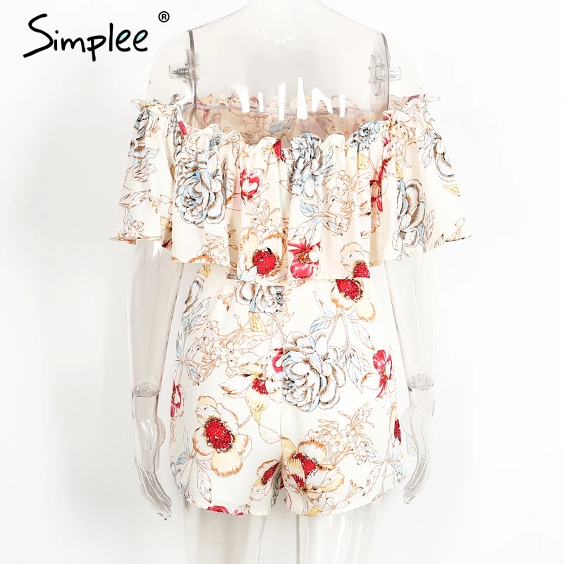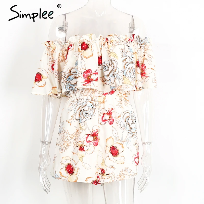 Simplee Off shoulder floral print women jumpsuit romper Elegant ruffle short playsuit Summer 2017 beach vacation sexy overalls