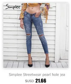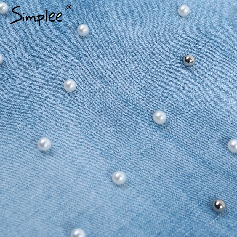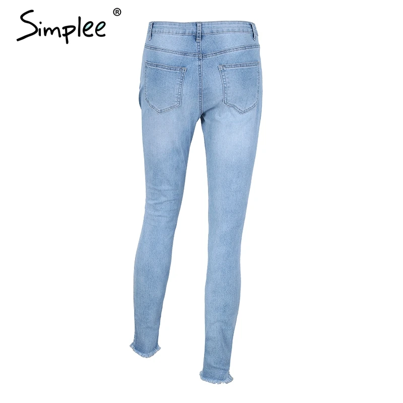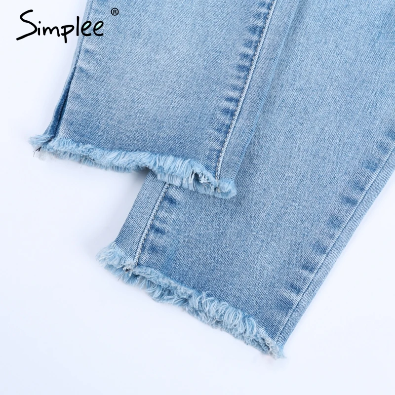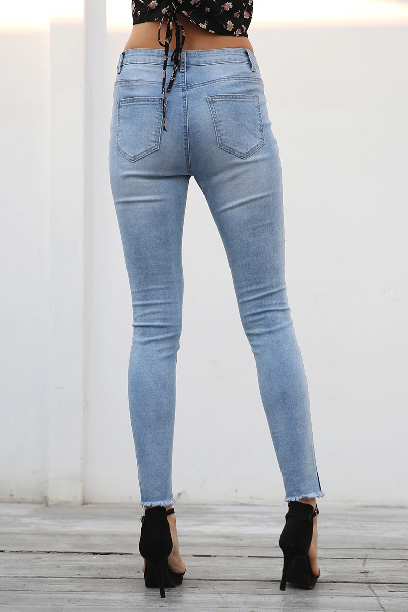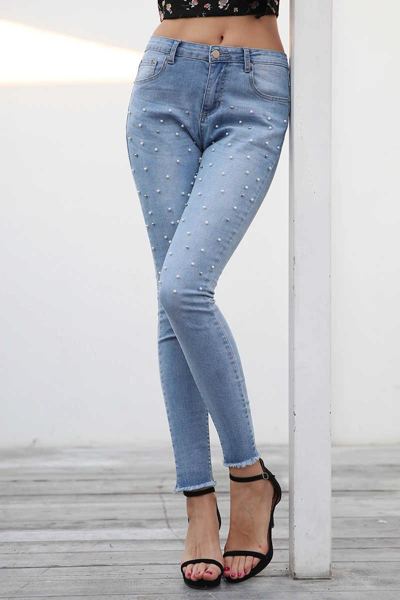 Simplee Pearl blue denim high waist jeans women Beading tassels skinny jeans streetwear pants 2018 spring pocket jeans femme
