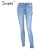 Simplee Pearl blue denim high waist jeans women Beading tassels skinny jeans streetwear pants 2018 spring pocket jeans femme