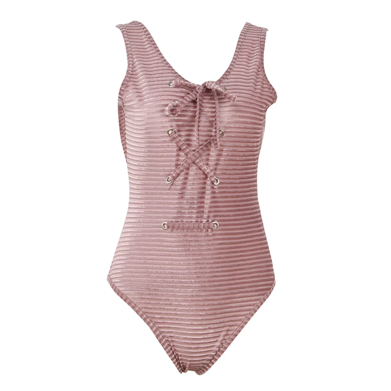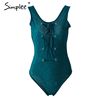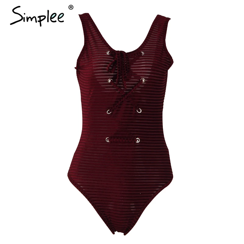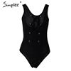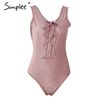 Simplee Sexy black bandage bodysuit Streetwear scoop neck cross jumpsuit women Glossy sleeveless lace up beach romper summer
