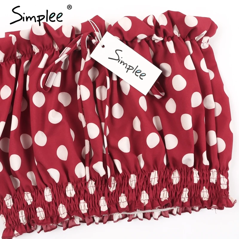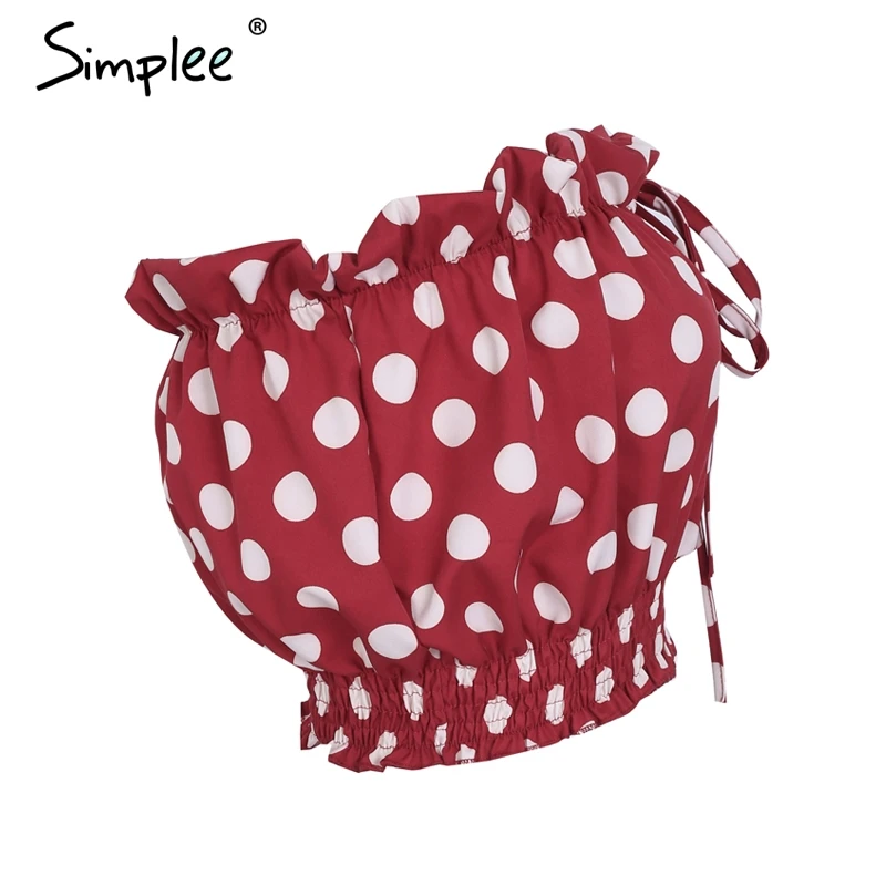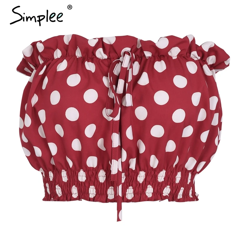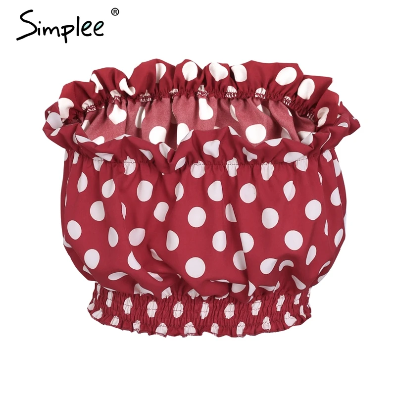 Simplee Sexy strapless polka dot crop top women Backless smocking ruffle camisole tank 2018 Casual tie up summer top tees femme