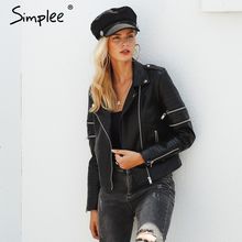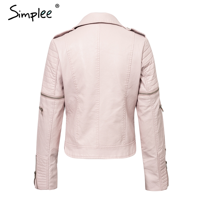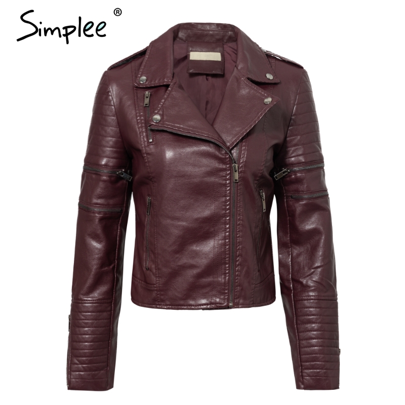Simplee Sexy turn down collar women autumn PU leather jacket Lady long sleeve outwear coat Female rivet zipper jacket 2018