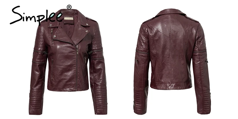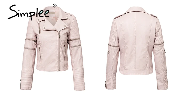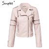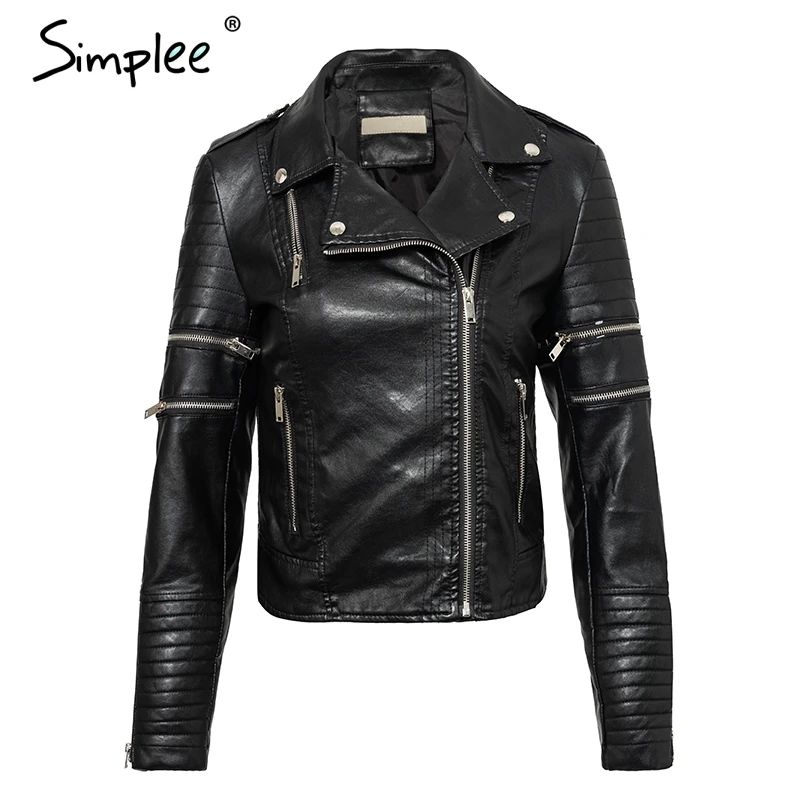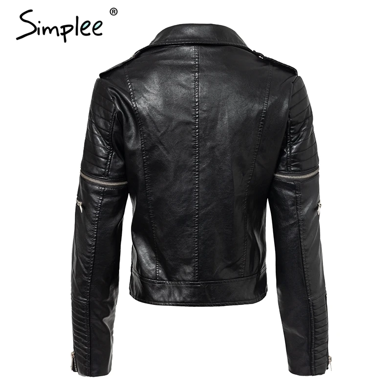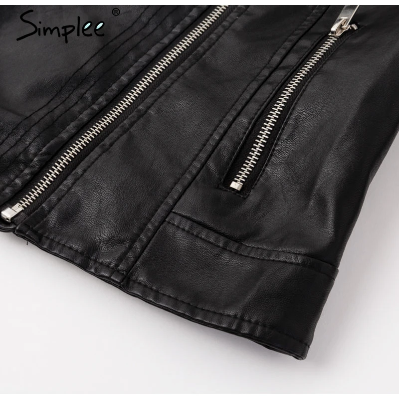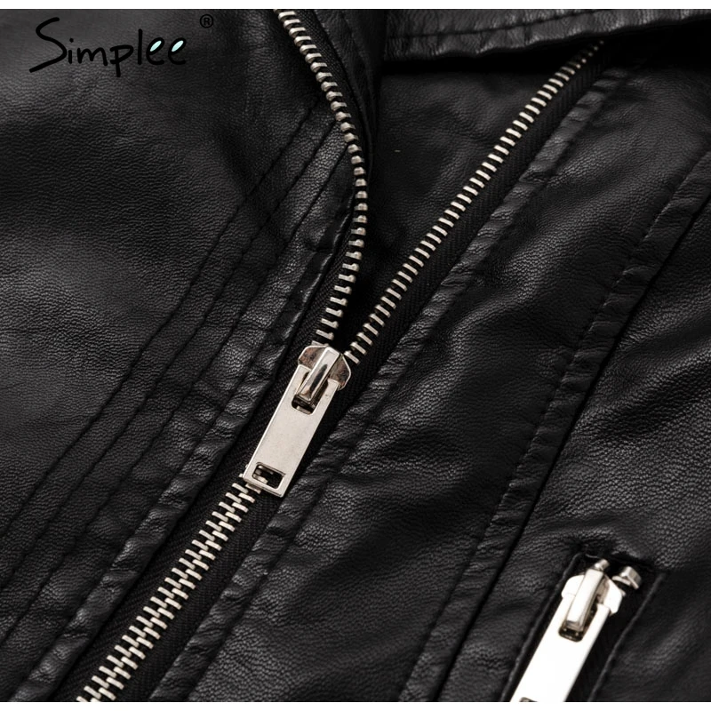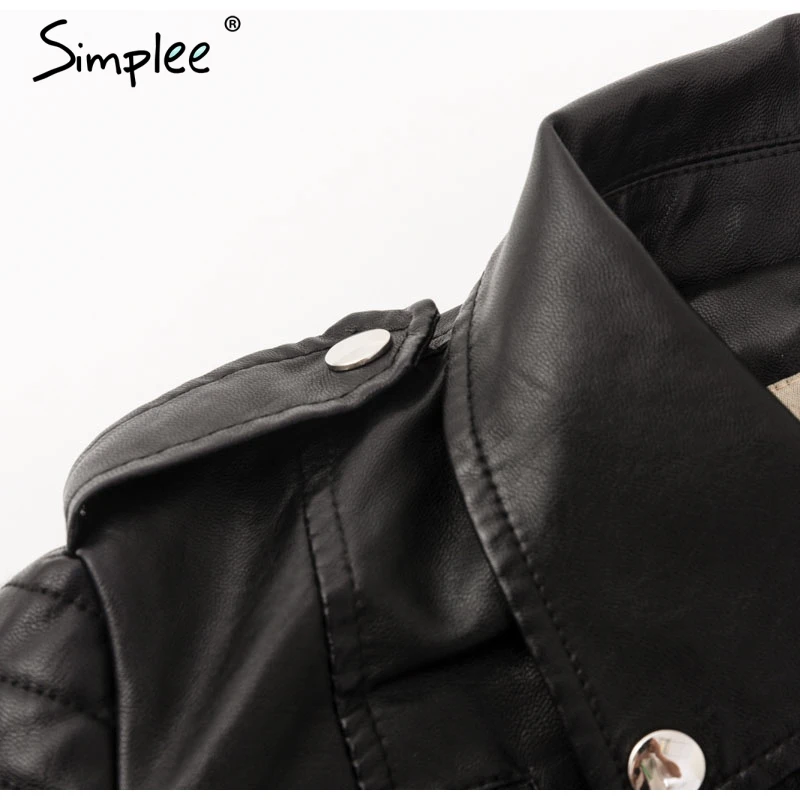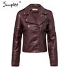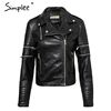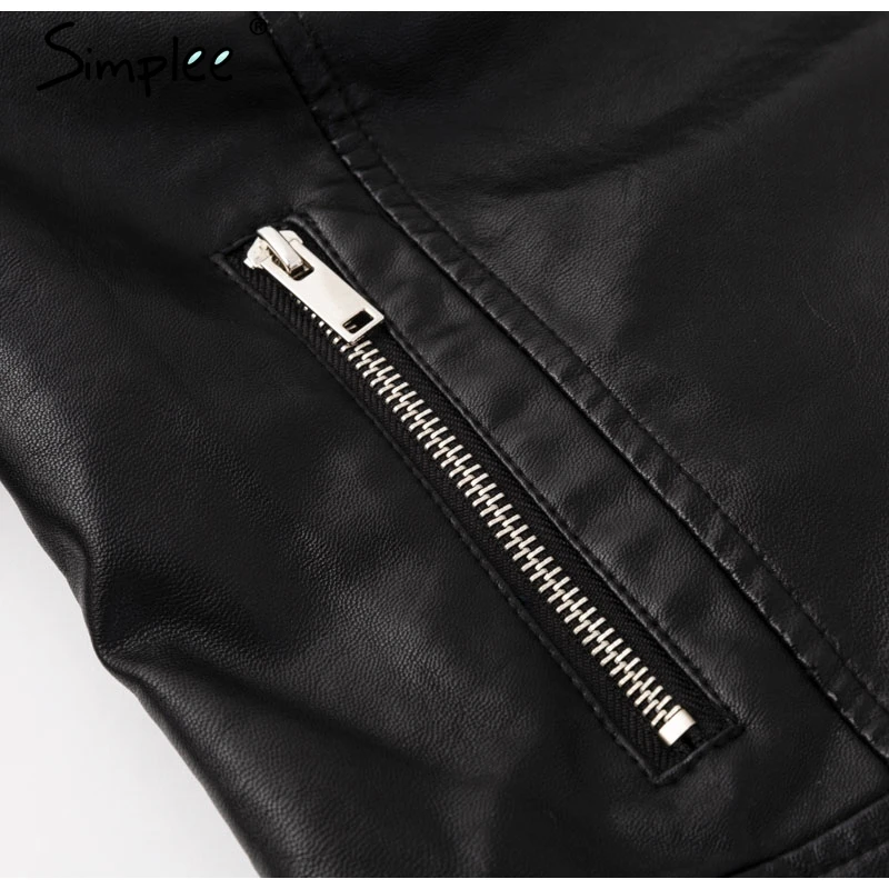 Simplee Sexy turn down collar women autumn PU leather jacket Lady long sleeve outwear coat Female rivet zipper jacket 2018