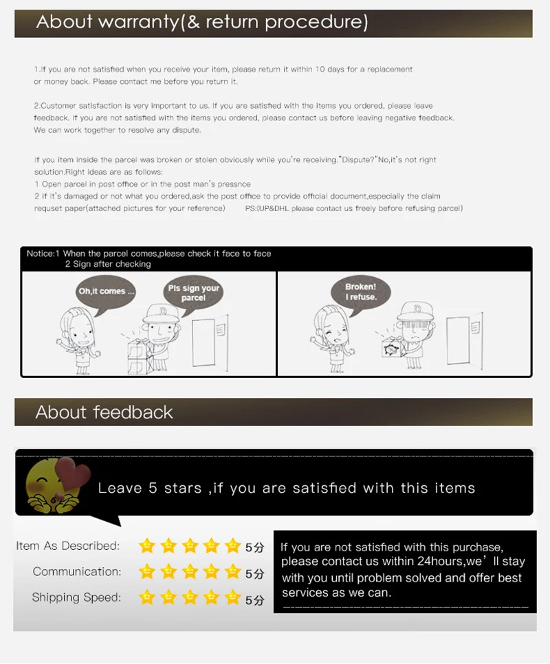 Your satisfaction is our #1 priority. Therefore, you can request a refund or reshipment for ordered products if: